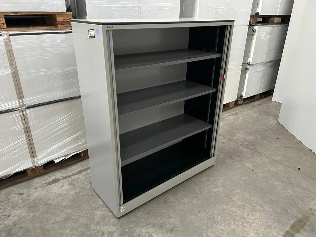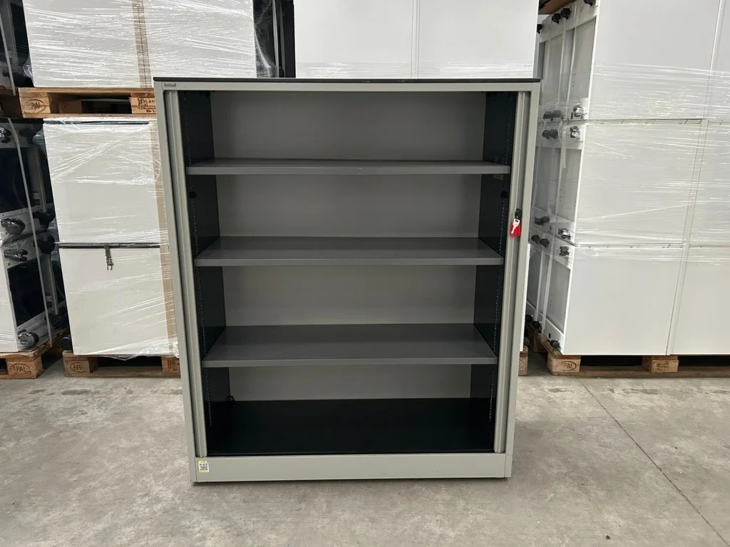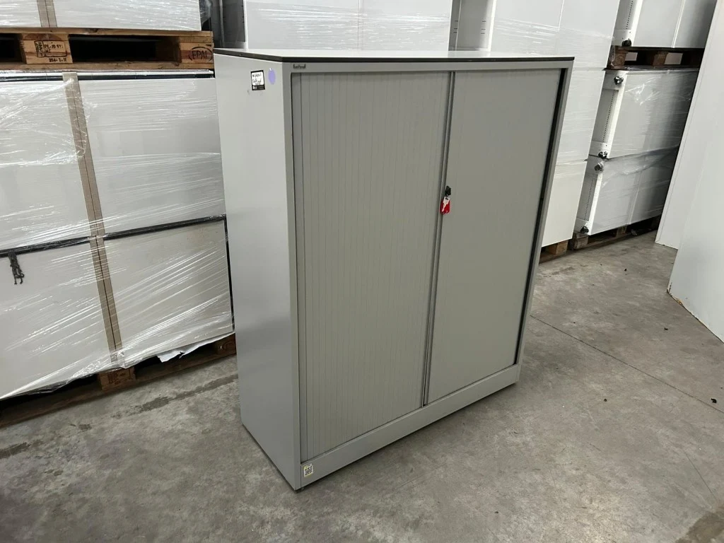 1x AHREND Halfh Vert Roldeurkast H145xB120xD45 - Grijs/Metaal, (V0427), met enkele gebruikssporen