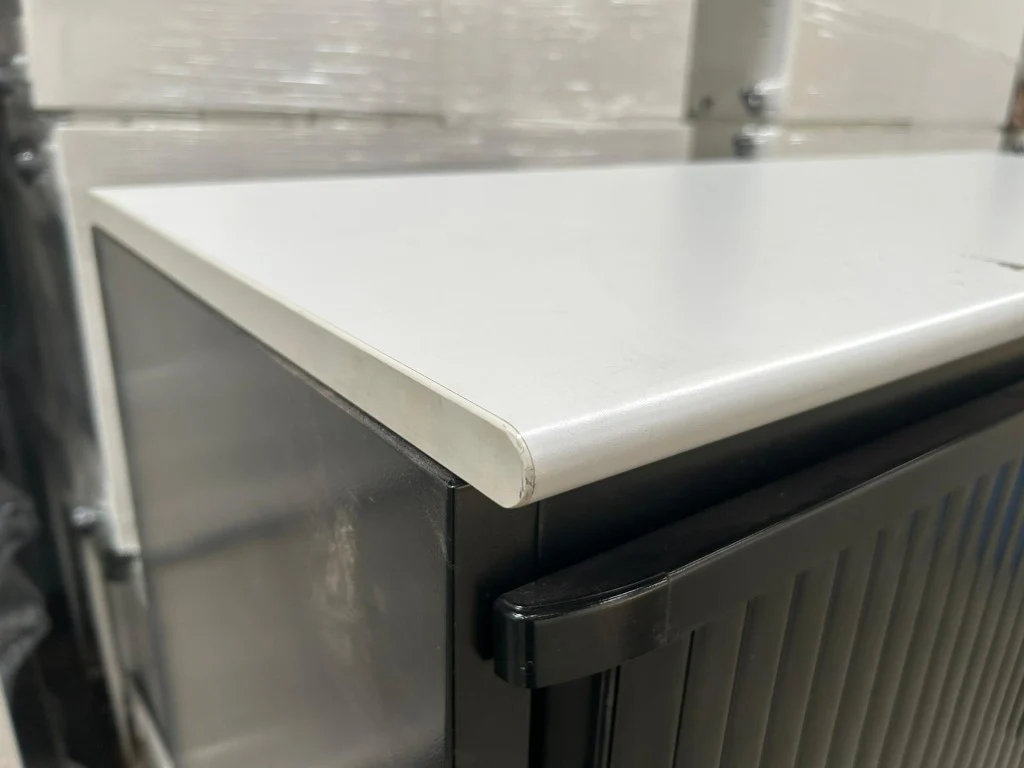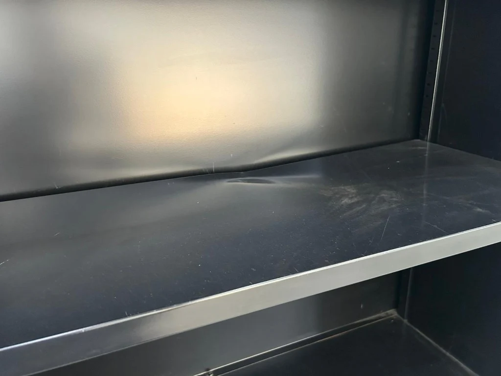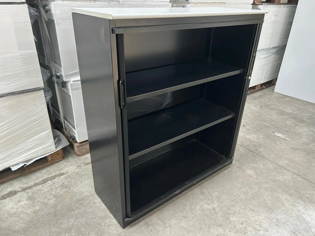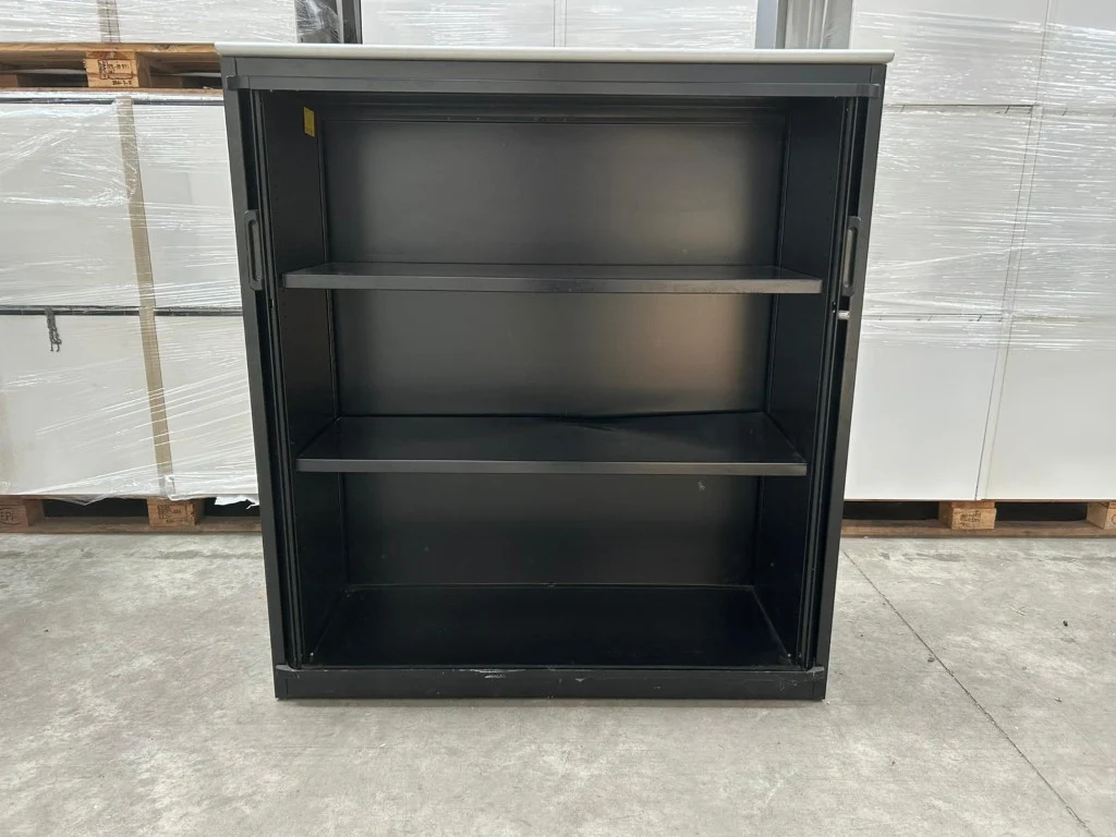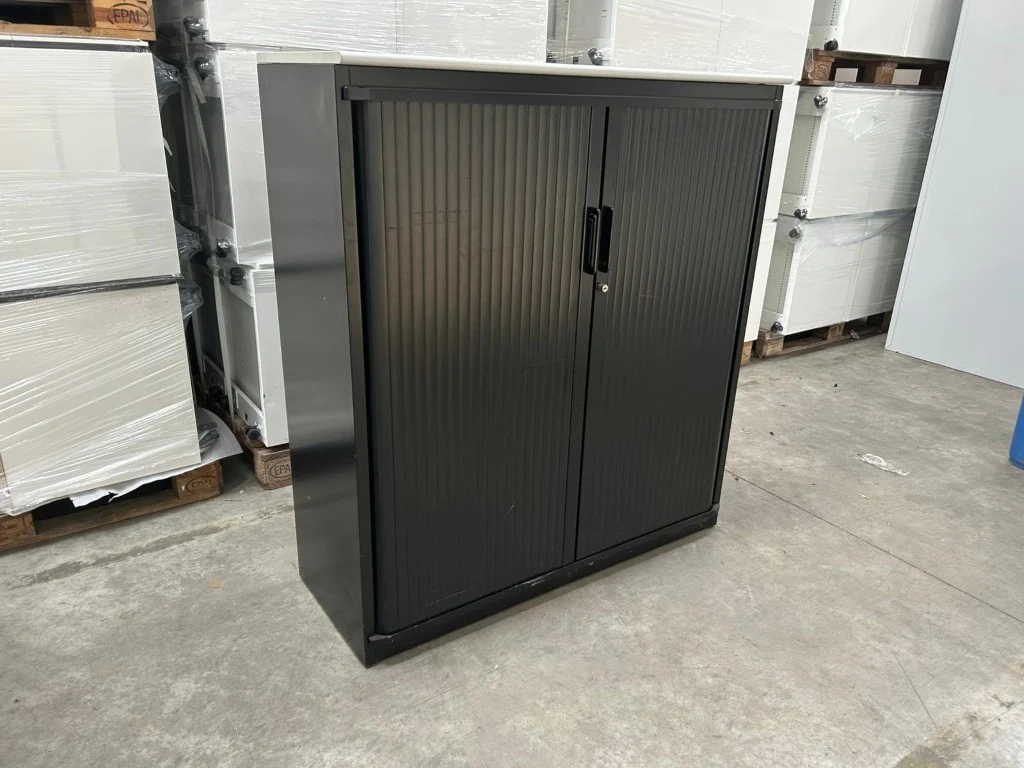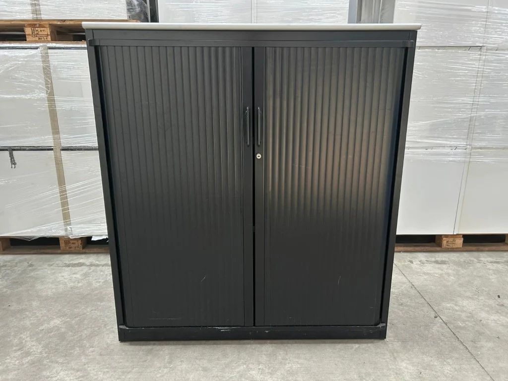 1x STEELCASE Halfh Vert Roldeurkast H135xB120xD45 - Zwart/Metaal, Beschadigde ladeschap (V0444), met gebruikssporen