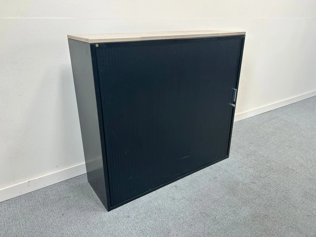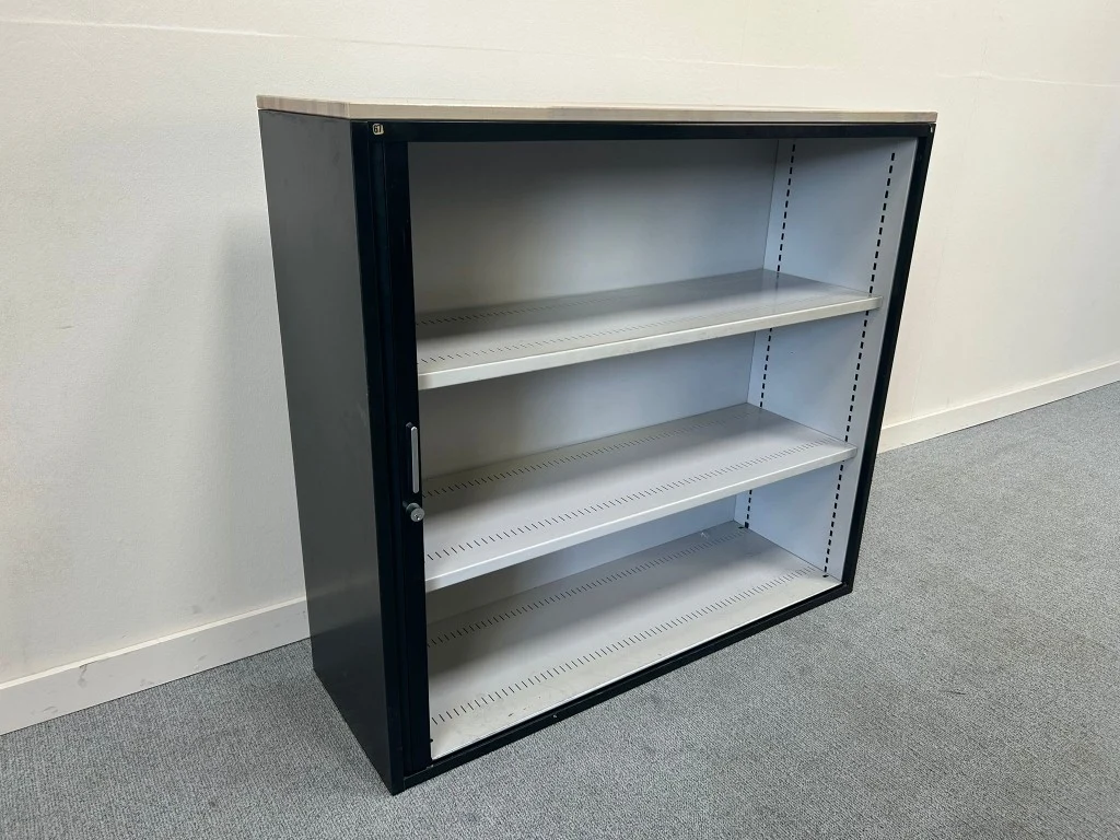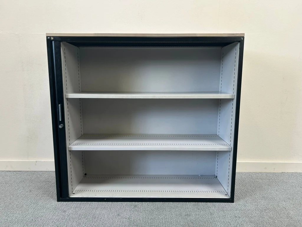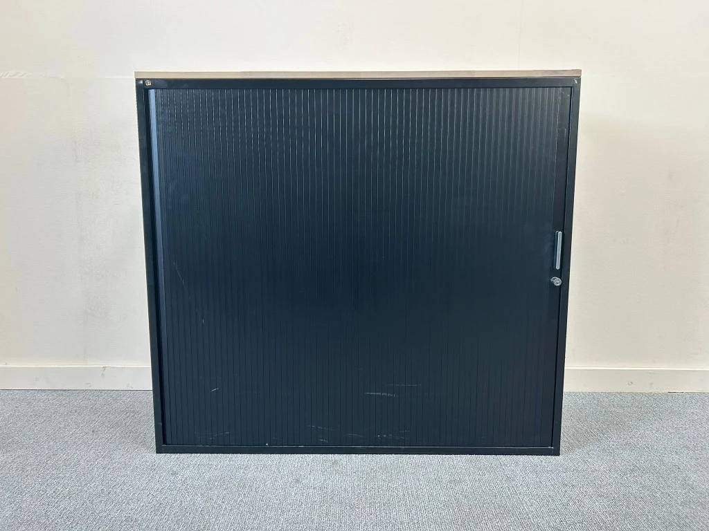 1x LISTA Halfh Vert Roldeurkast H120xB110xD40 - Zwart/Metaal, Sleutel afwezig (V0325), lichte krassen en gebruikssporen