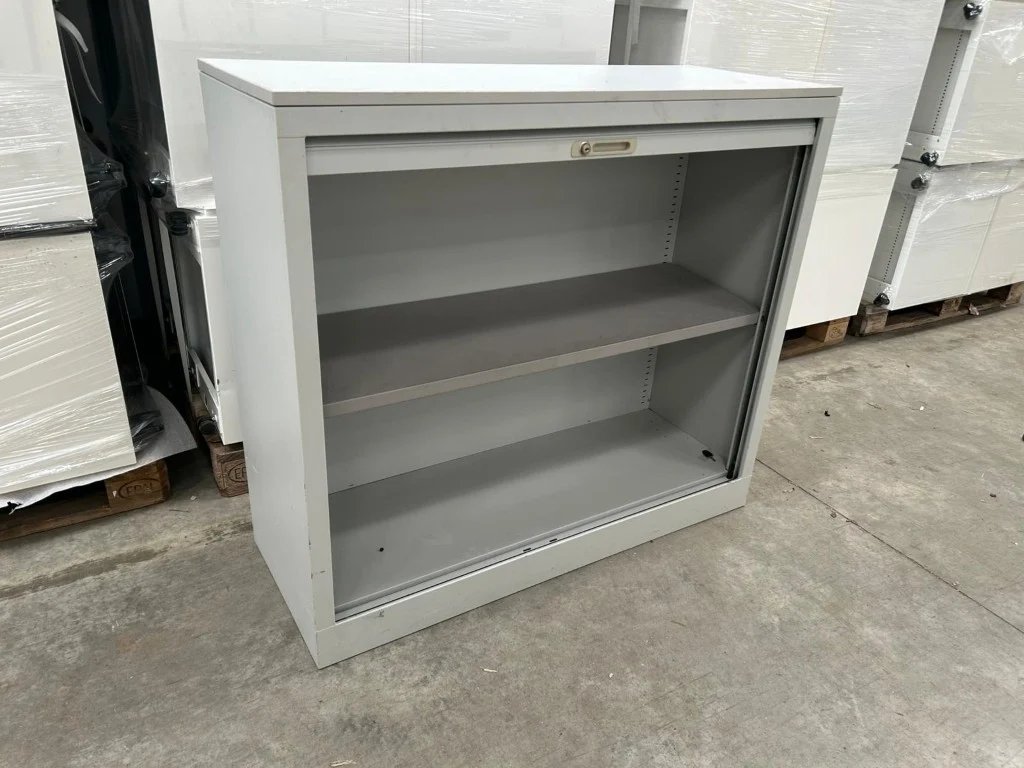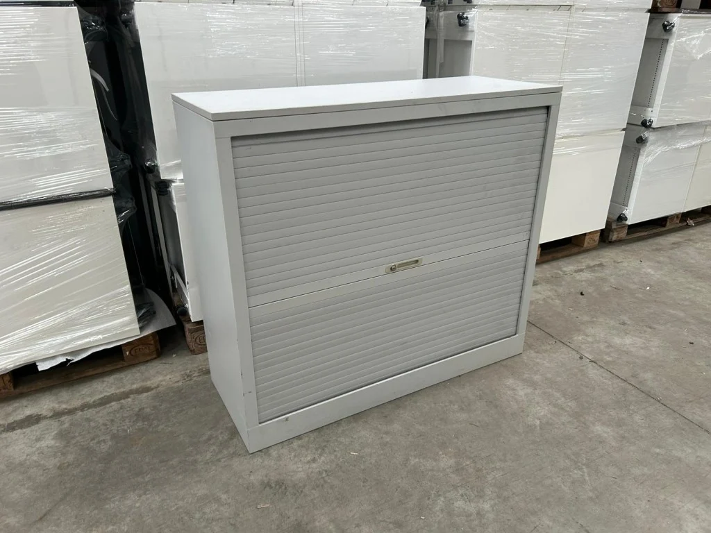 1x Halfh Hor Roldeurkast H108xB120xD46 - Grijs/Metaal, (V0450), met gebruikssporen