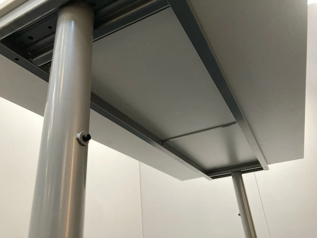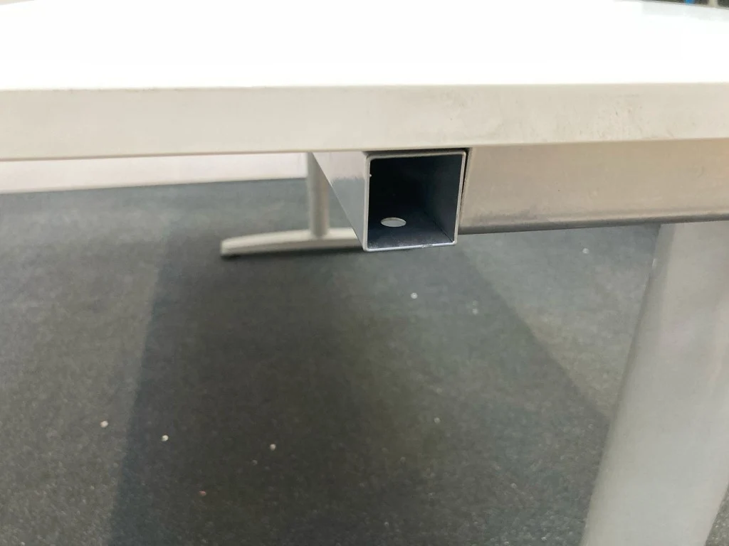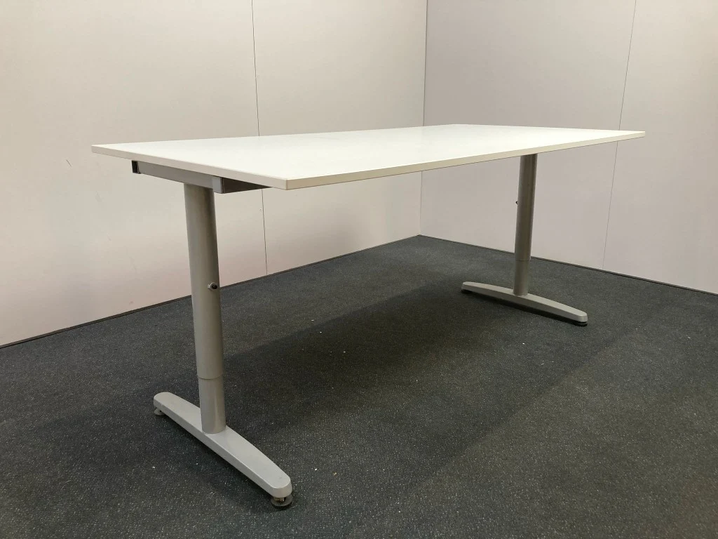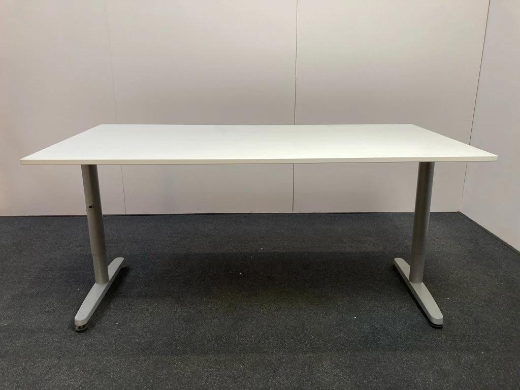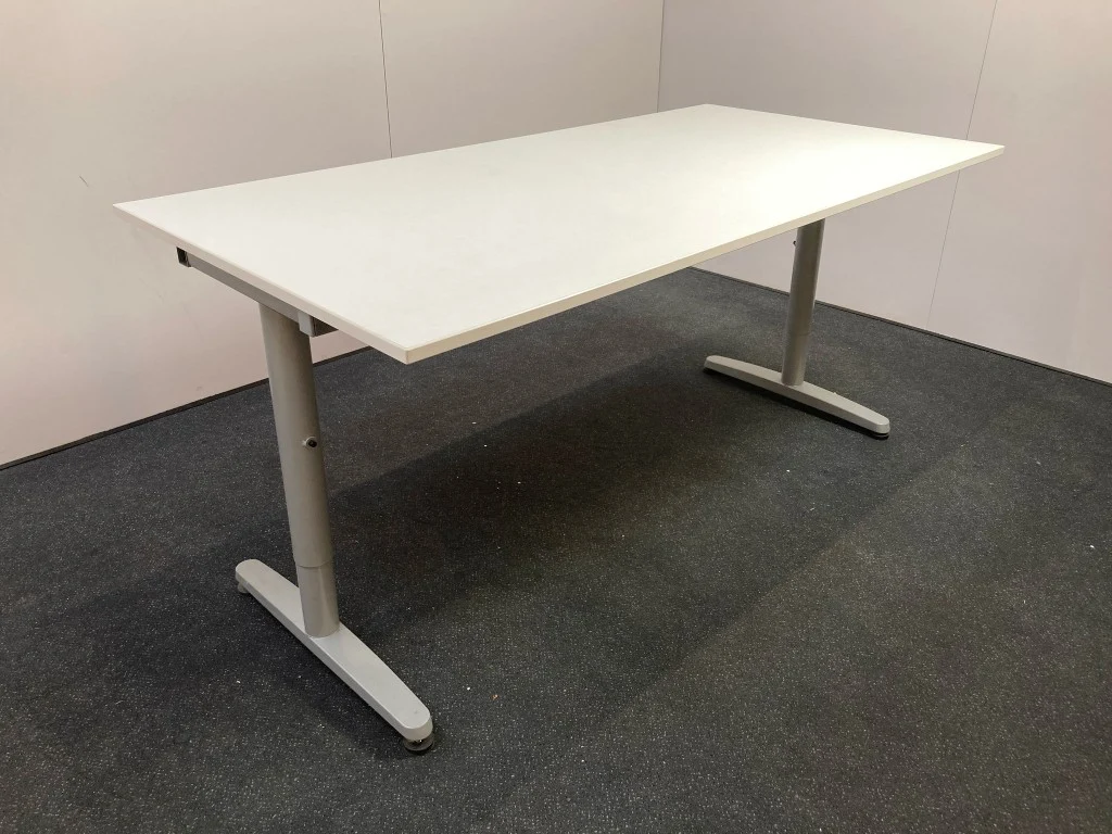 1x Witte bureautafel H74xD80xB160 - Wit/Melamine/Metaal, enkele lichte gebruikssporen (V0206)