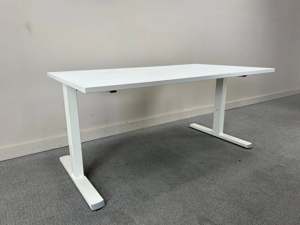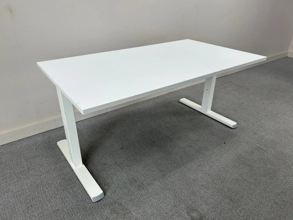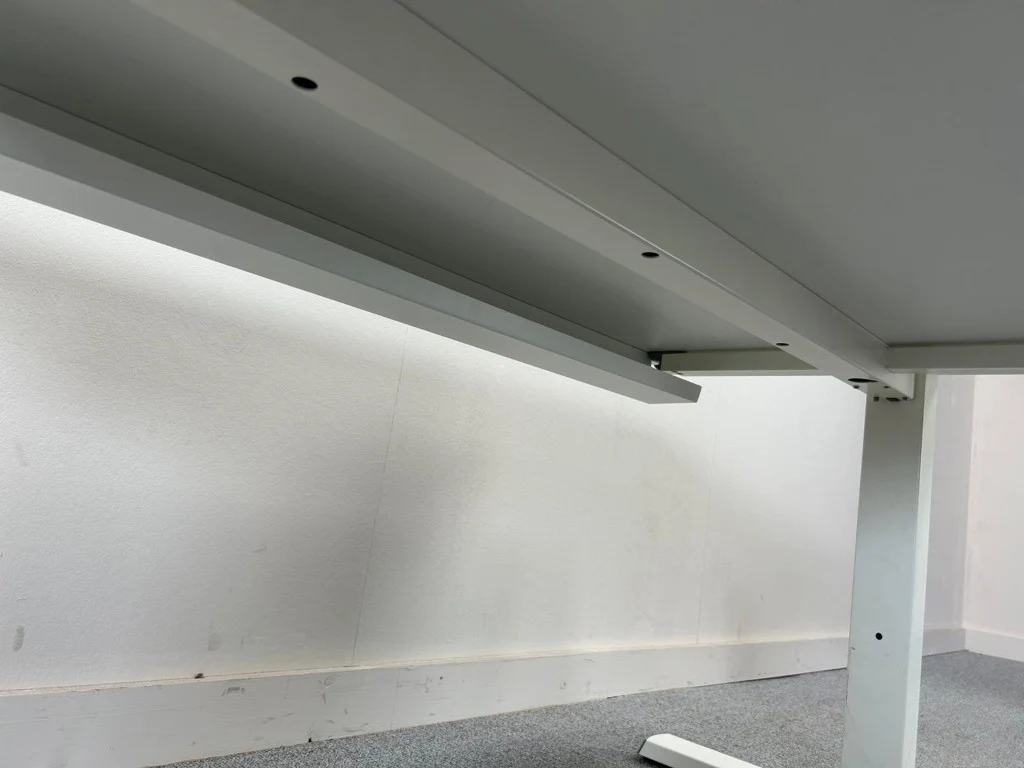 1x OSMOZ bureautafel H65xD80xB140 - Wit/Melamine/Wit metaal, enkele gebruikssporen, hoogteverstelmechanisme beschadigd (V0366)