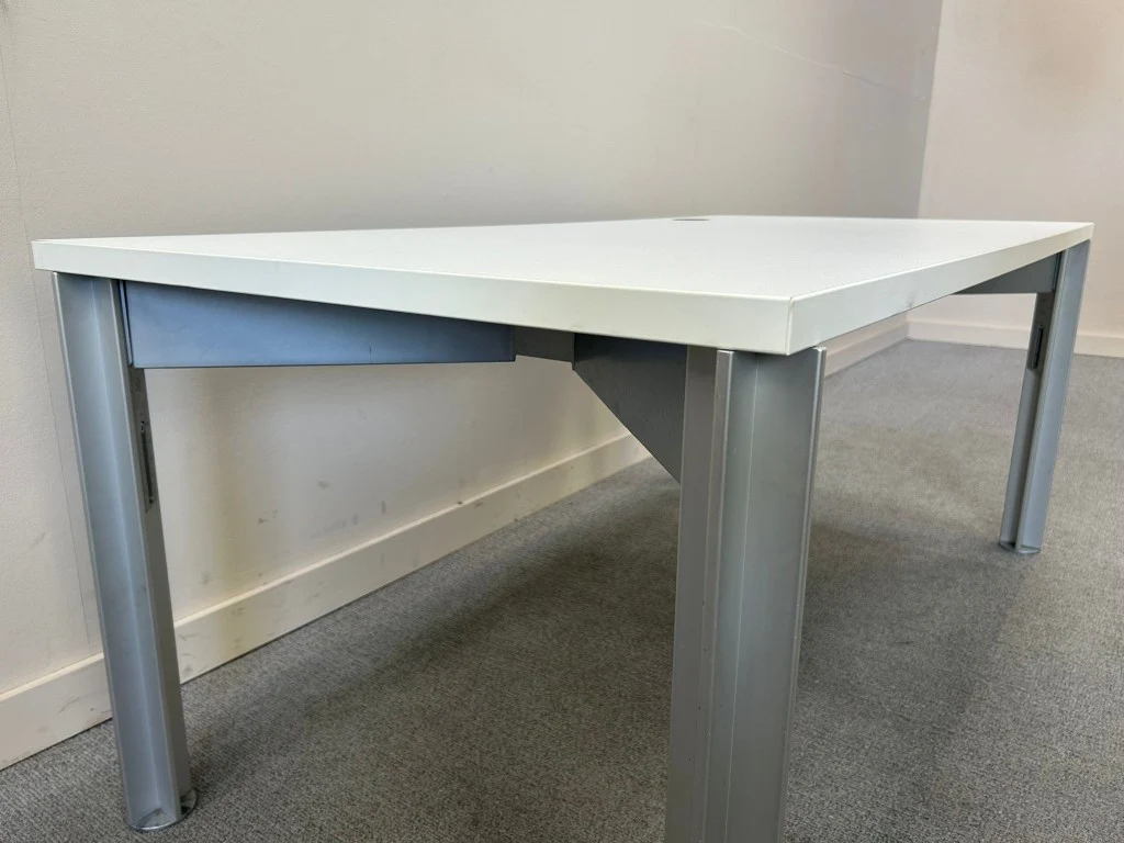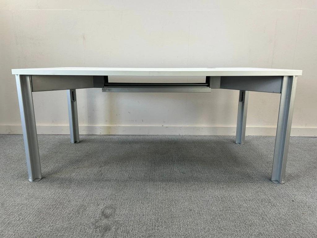 1x BULO bureautafel H78xD80xB160 - Wit/Melamine/Metaal, enkele gebruikssporen (V0381)