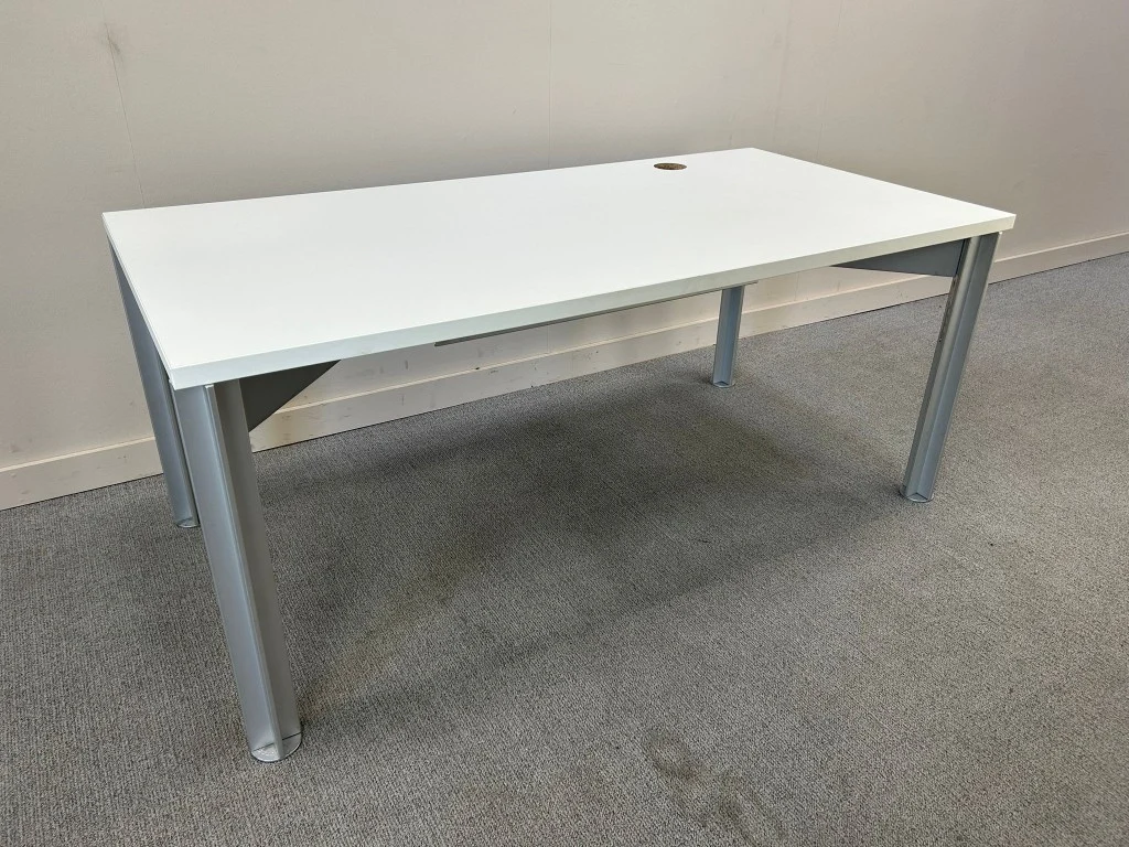 1x BULO bureautafel H78xD80xB160 - Wit/Melamine/Metaal, enkele gebruikssporen (V0385)
