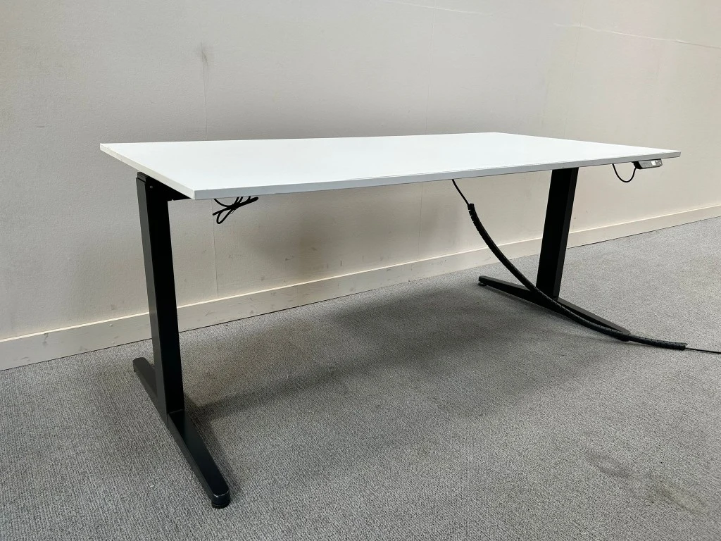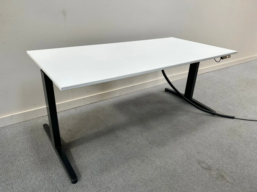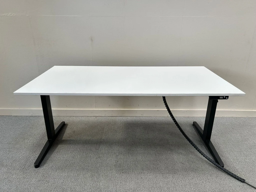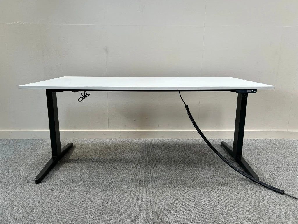 1x AHREND Elektrisch Zit-Sta Bureau B160xB80xH68-118 - Wit/Melamine/Zwart Metaal, met enkele gebruikssporen (V0391)