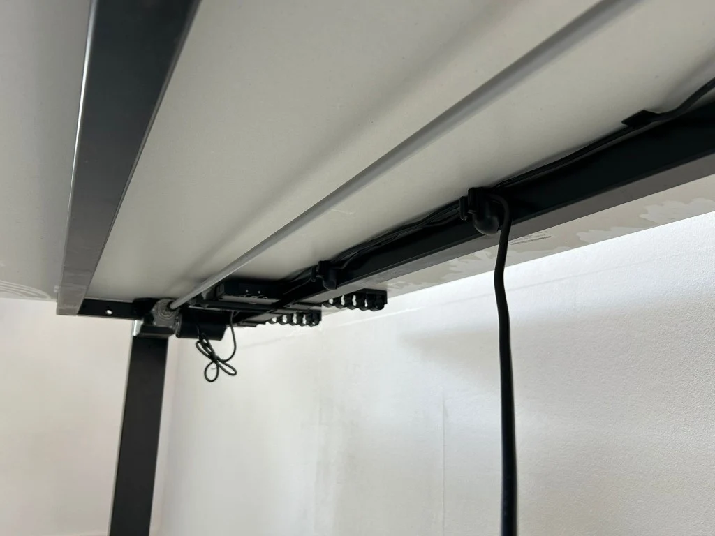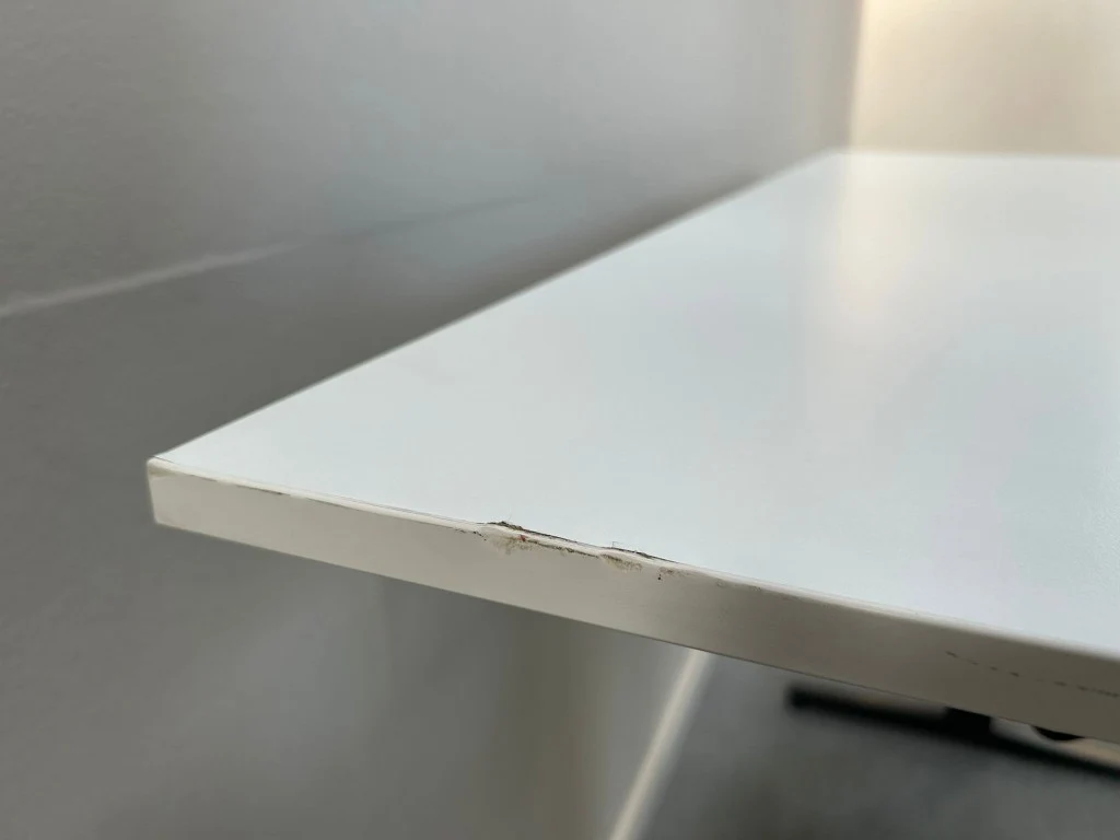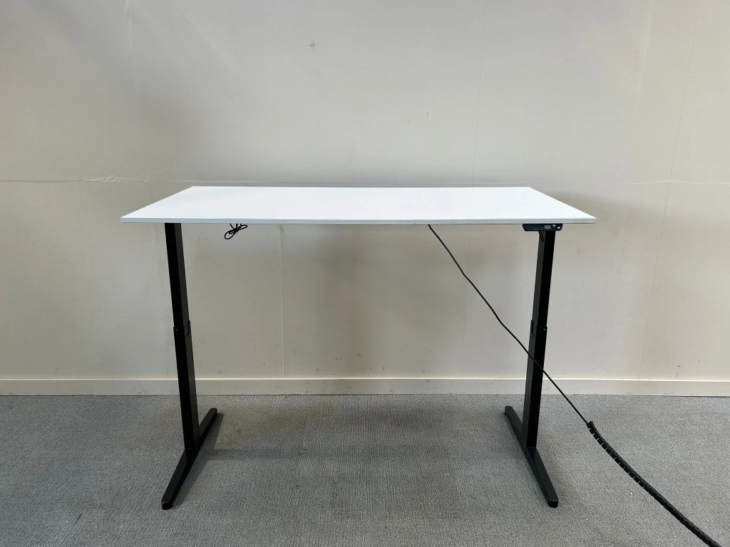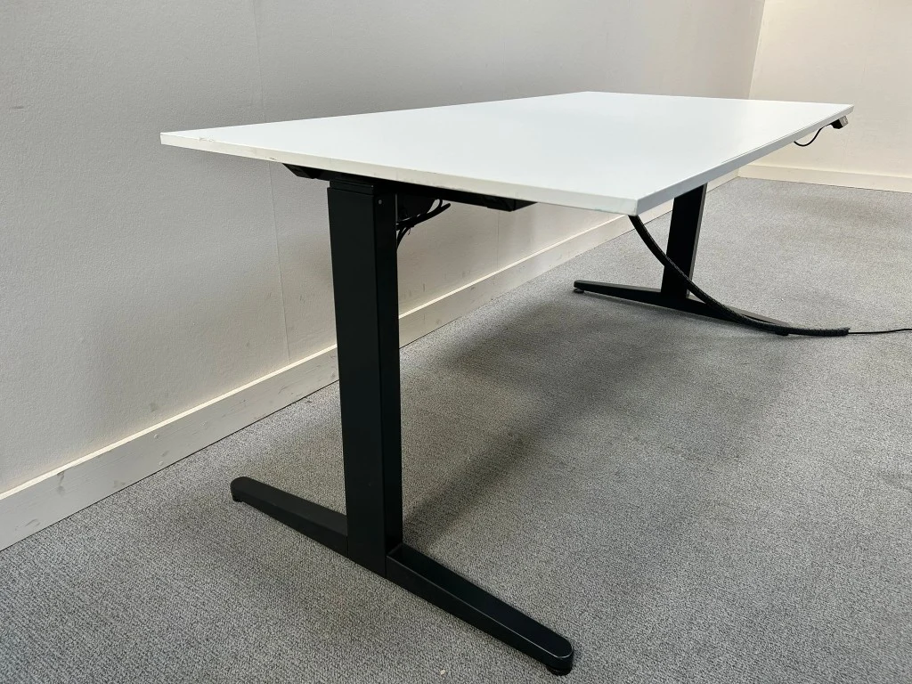 1x AHREND Elektrisch Zit-Sta Bureau B160xB80xH68-118 - Wit/Melamine/Zwart Metaal, met enkele gebruikssporen (V0391)