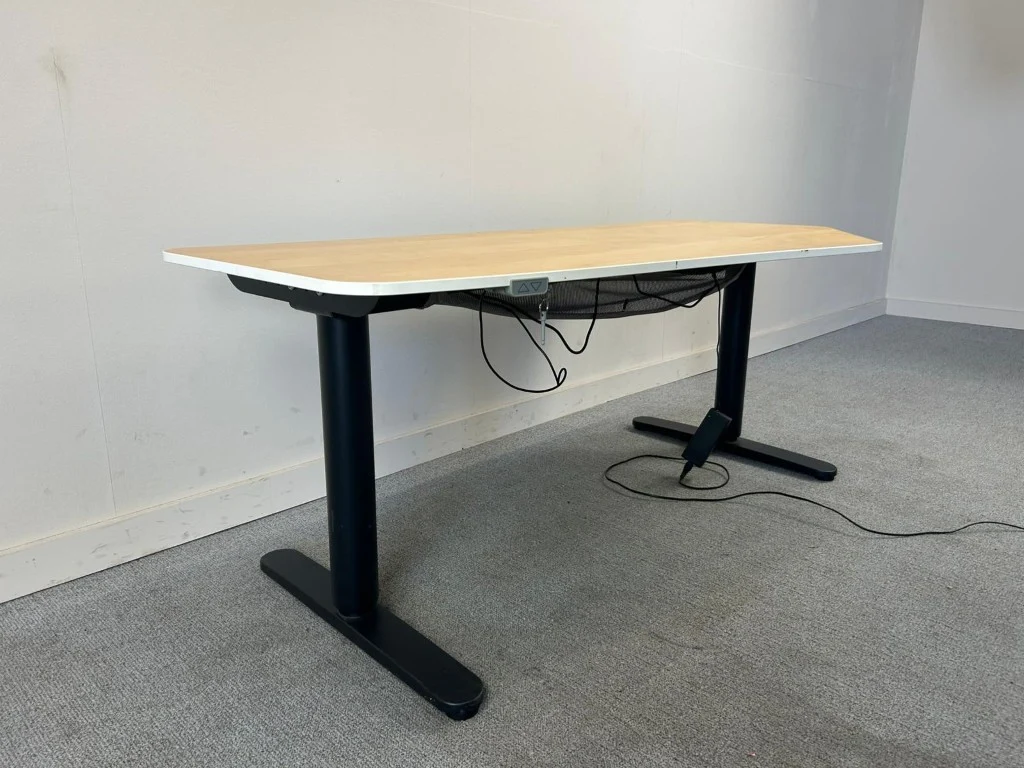 1x IKEA Elektrisch Zit-Sta Bureau B160xB80xH125-64 - Hout/Melamine/Zwart Metaal, met enkele gebruikssporen (V0485)