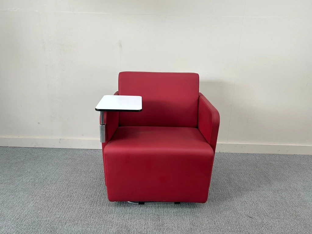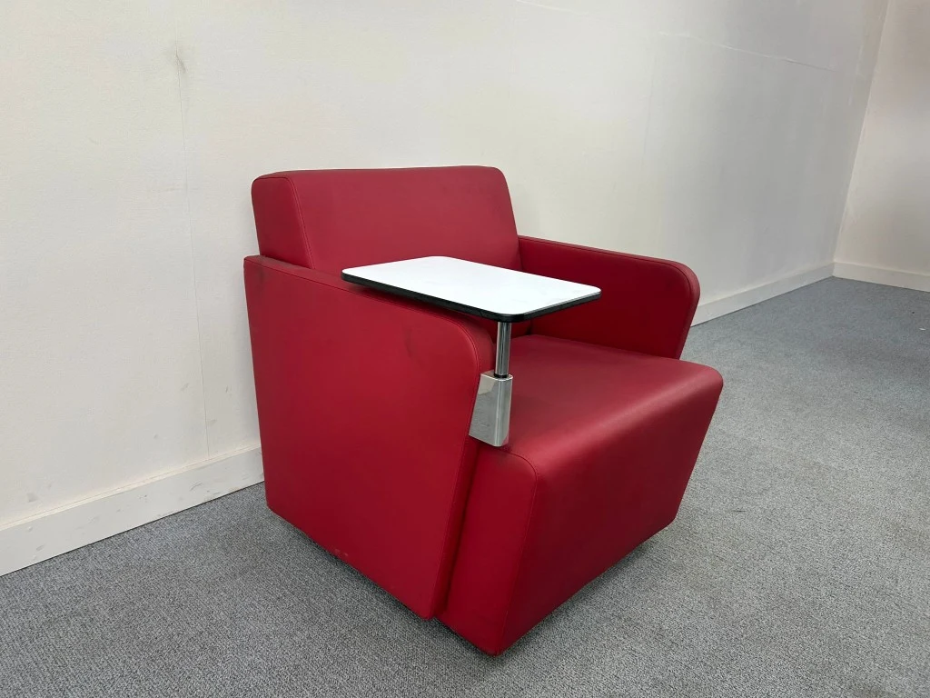1x LANDE Clubstoel met leuningtafel - Rood/Stof, met lichte gebruikssporen (V0349)