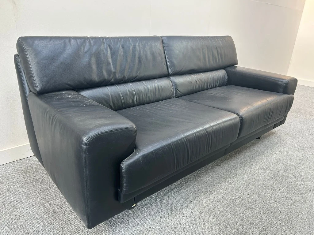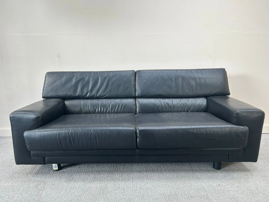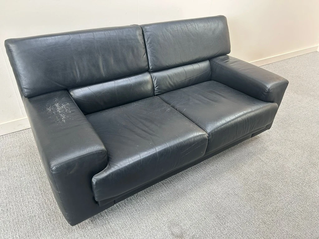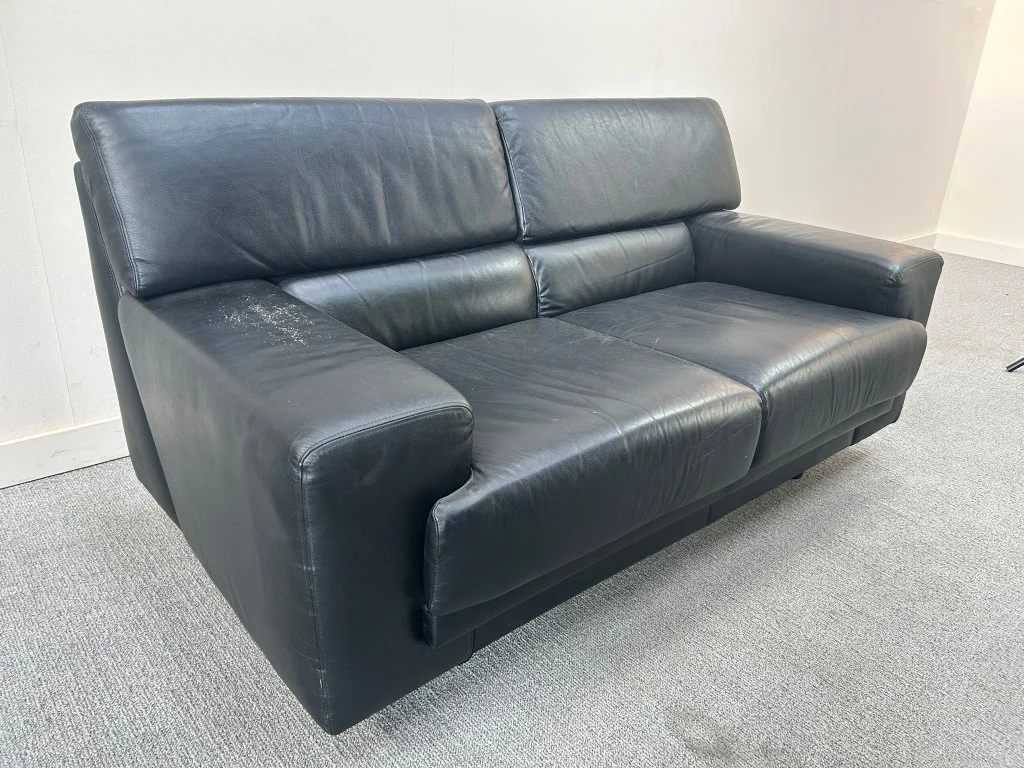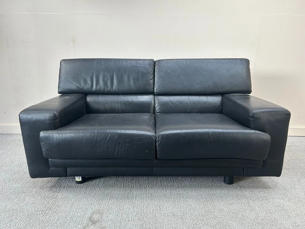 H80xB155xD80 - Zwart/Kunstleer, met enkele gebruikssporen en stofverzadiging (V0361)