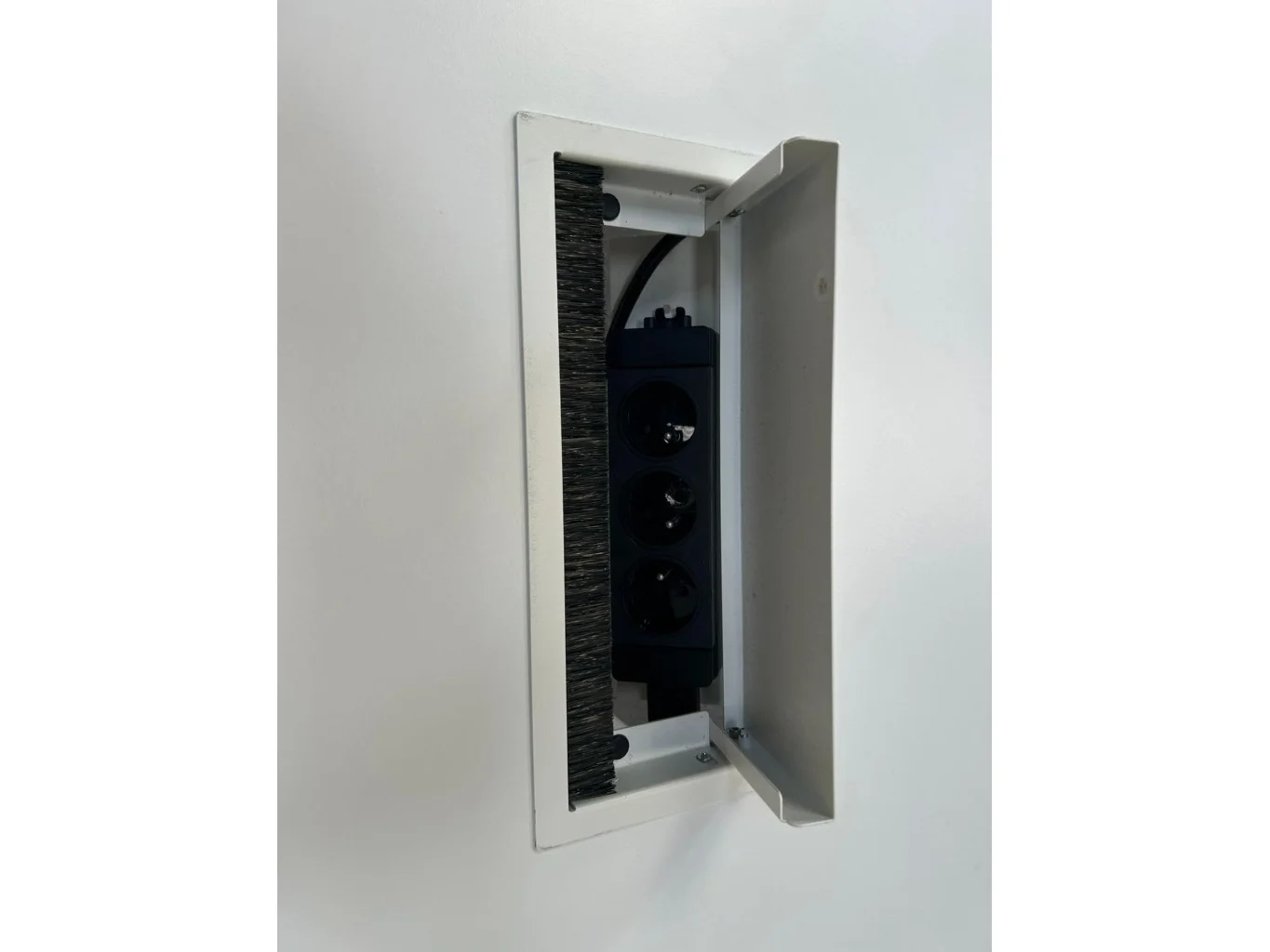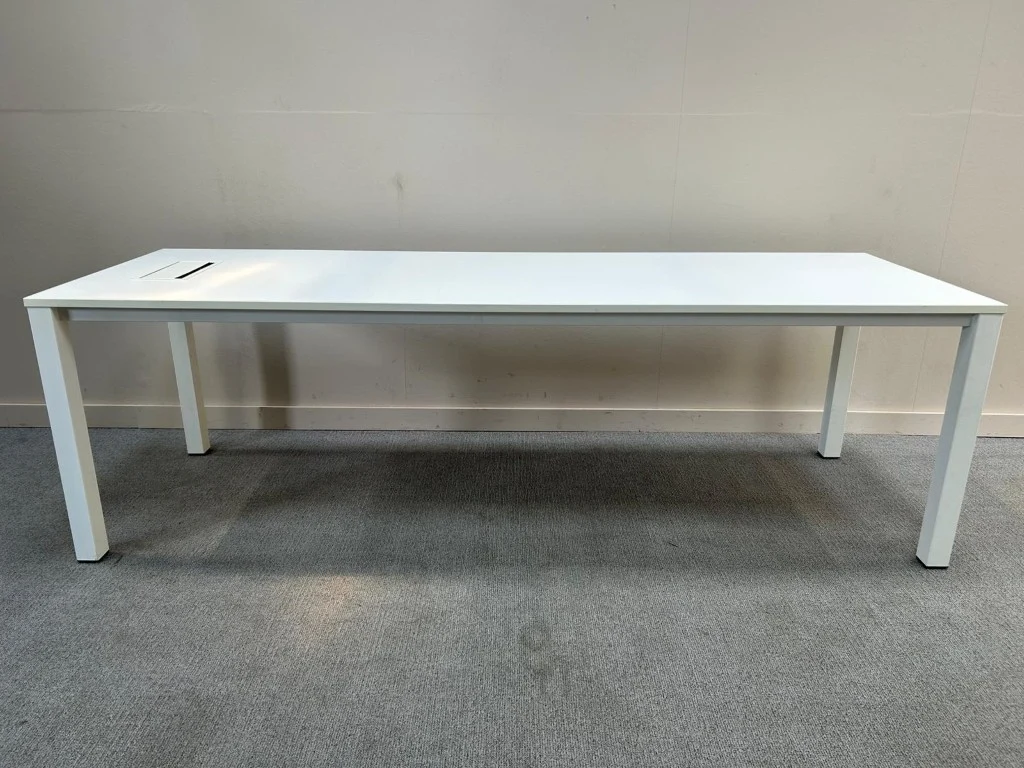 1x PAMI Vergadertafel H74xB240xD100 - Wit/Melamine/Wit Metaal, met enkele gebruikssporen, lichte schade, komt met kabeldoorvoer (V0342)