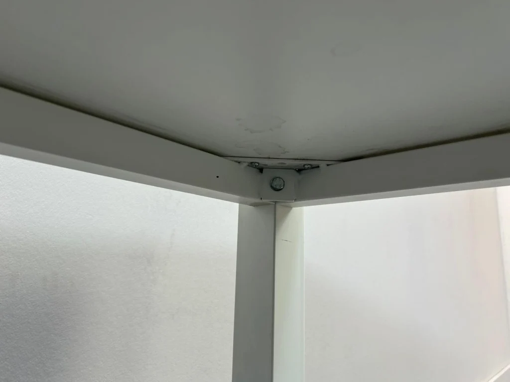 1x PAMI Vergadertafel H74xB240xD80 - Wit/Melamine/Wit Metaal, met enkele gebruikssporen, komt met kabeldoorvoer (V0344)