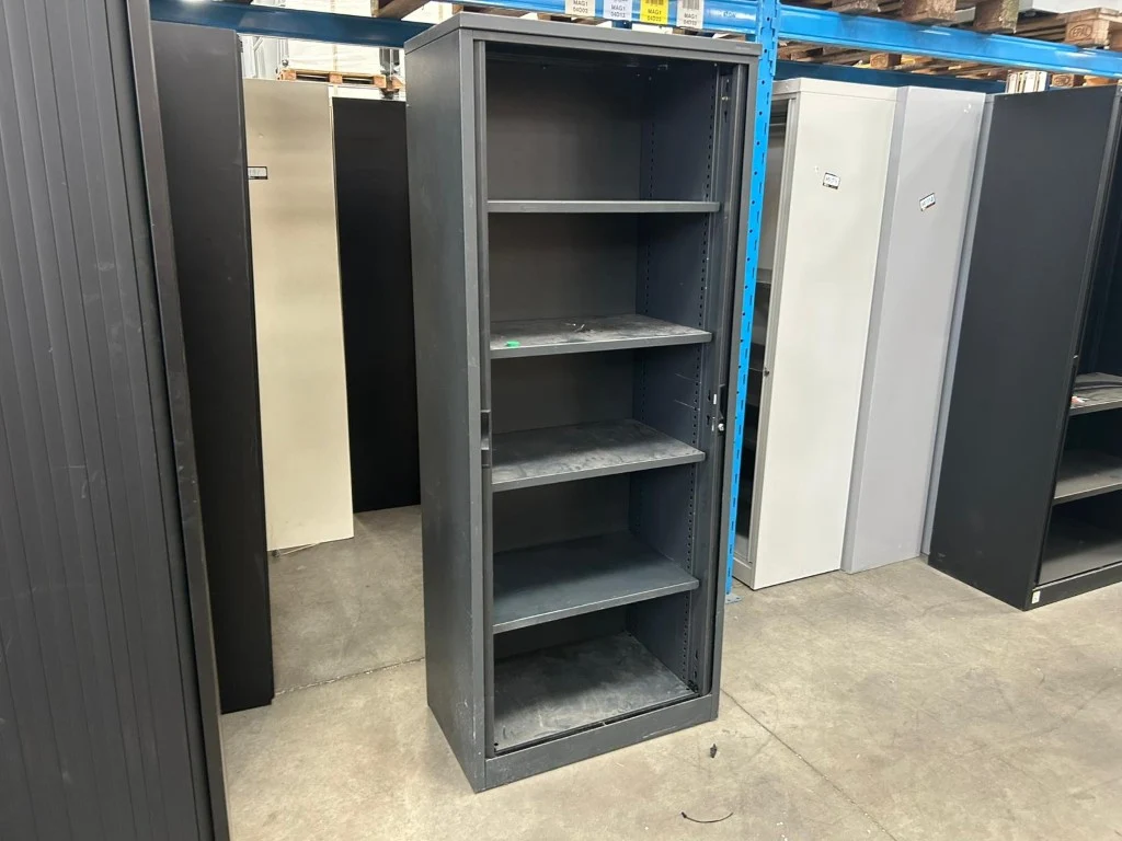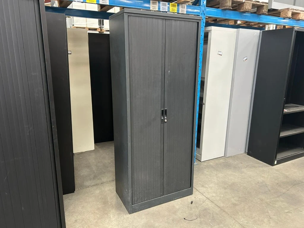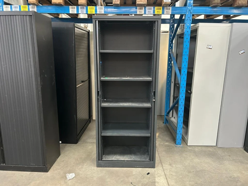 1x TDS hoge verticale roldeurkast H195xB80xD48 - Zwart/Metaal, met gebruikssporen, sleutel aanwezig (V0515)