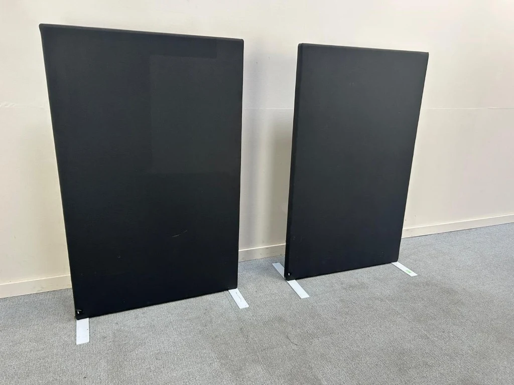 2x Akoestische scheidingswanden H160xB100xD6cm - Zwart/Stof, enkele gebruikssporen, duo van akoestische scheidingswanden (V0495)