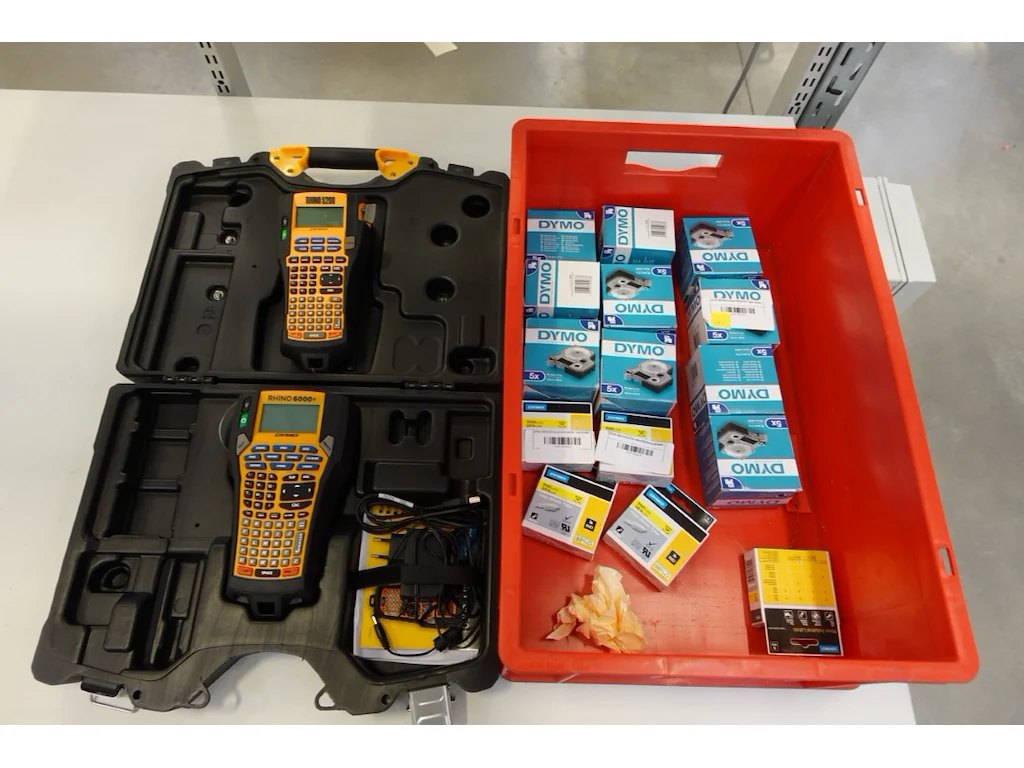 Type: Rhino 6000+, samen met Rhino5200(defect), en diverse labels in grijpbak<br /> locatie: magazijn