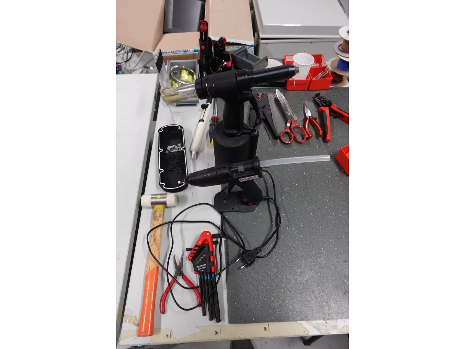 Oa: pneumatische revettentang, dymoprinter, soldeerstation,...<br /> locatie: Printermagazijn