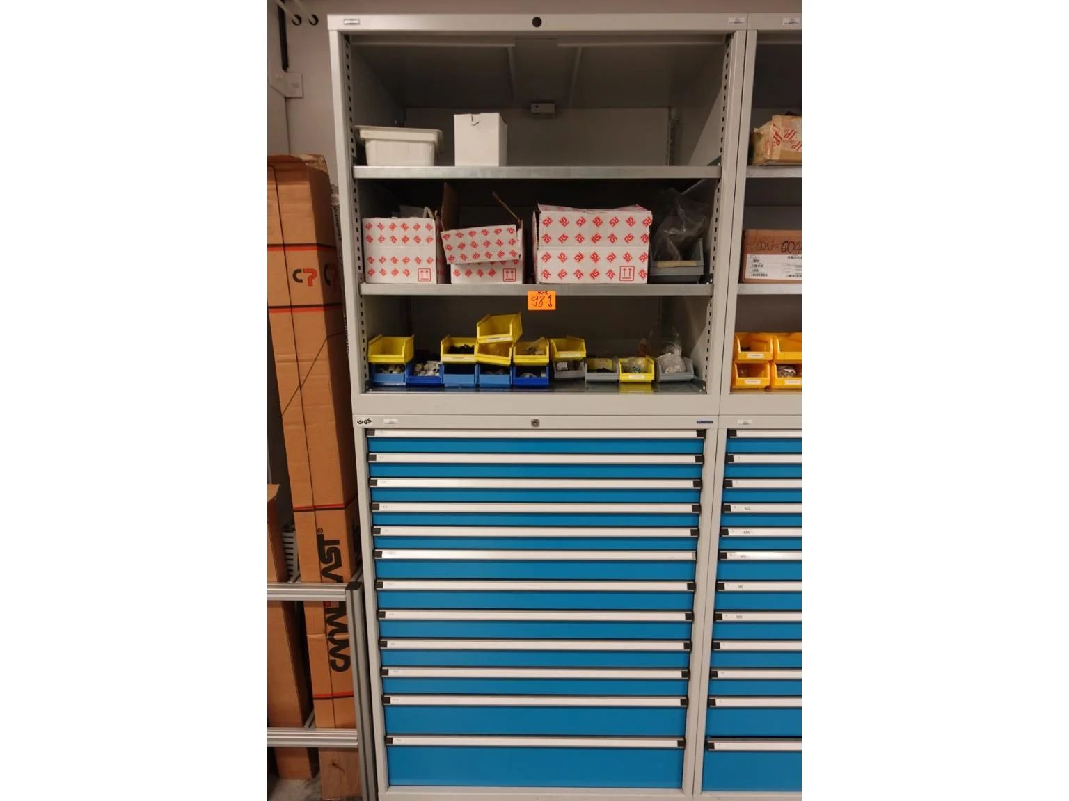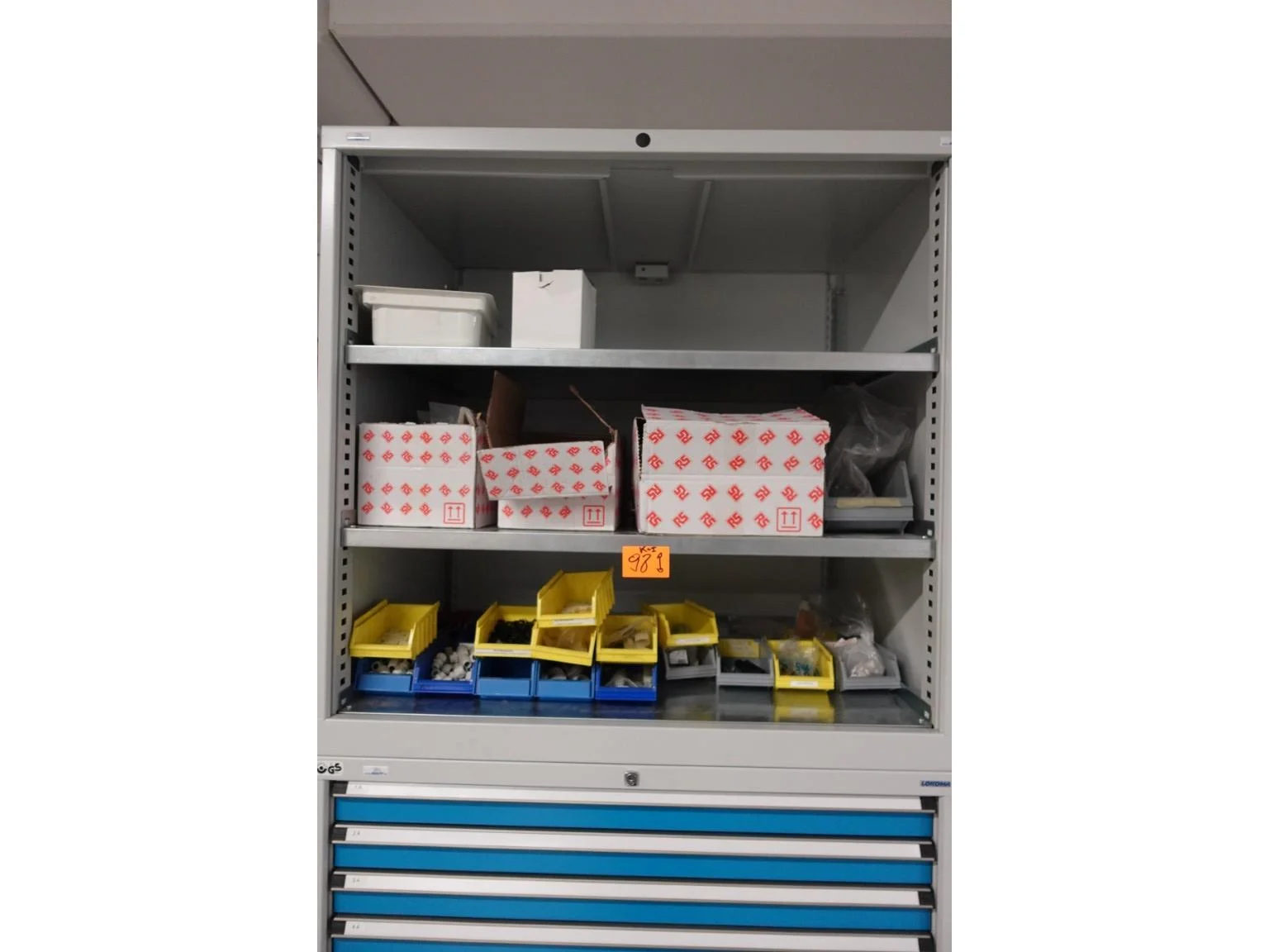 Metalen materiaalkast + inhoud