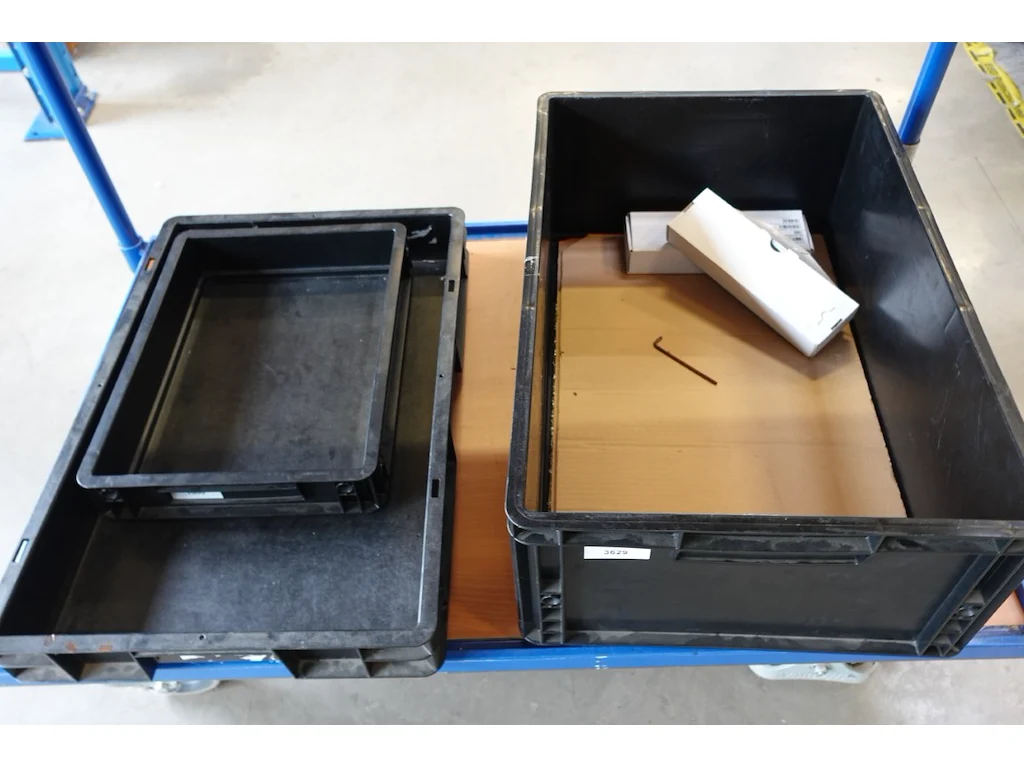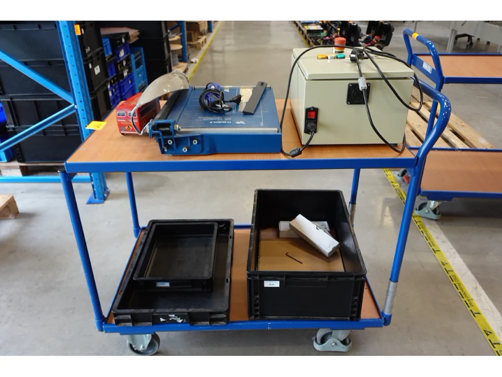 Verrijdbare magazijnkar + inhoud