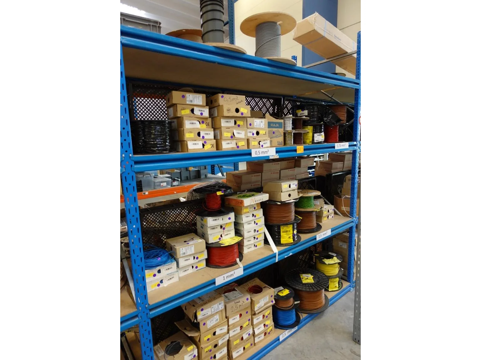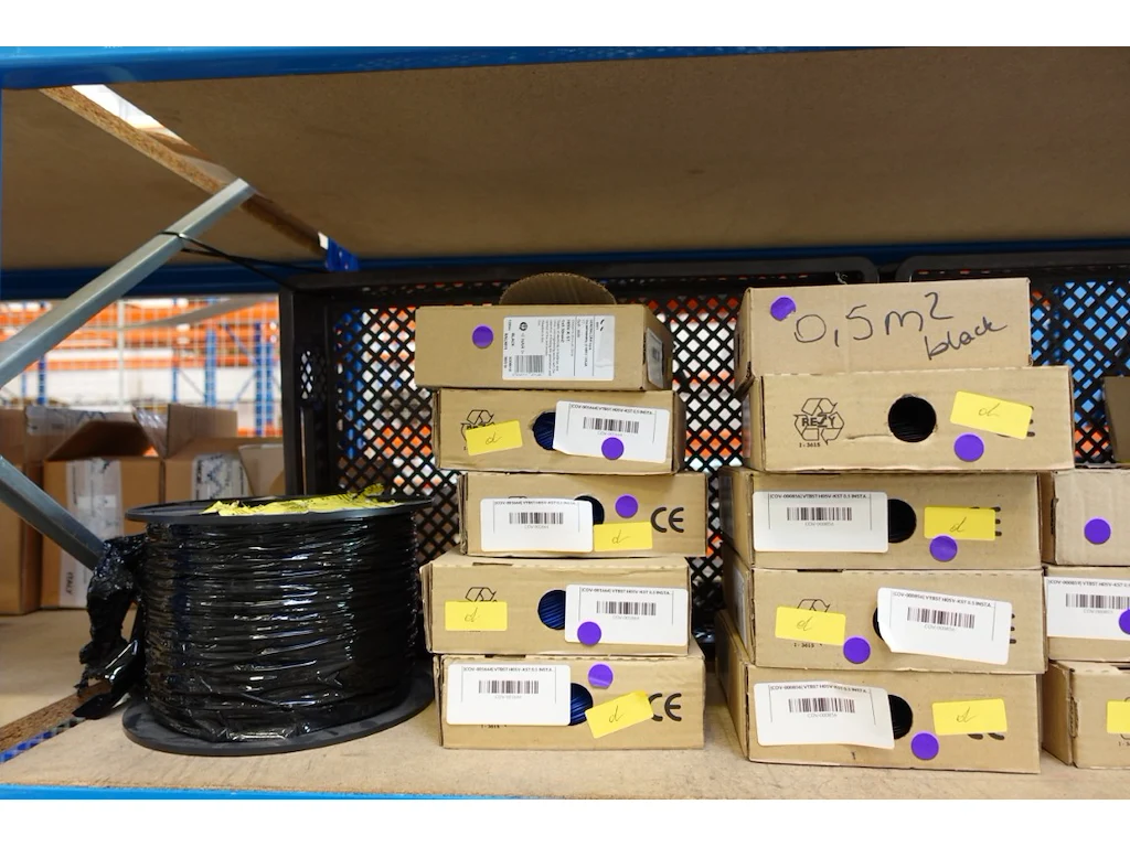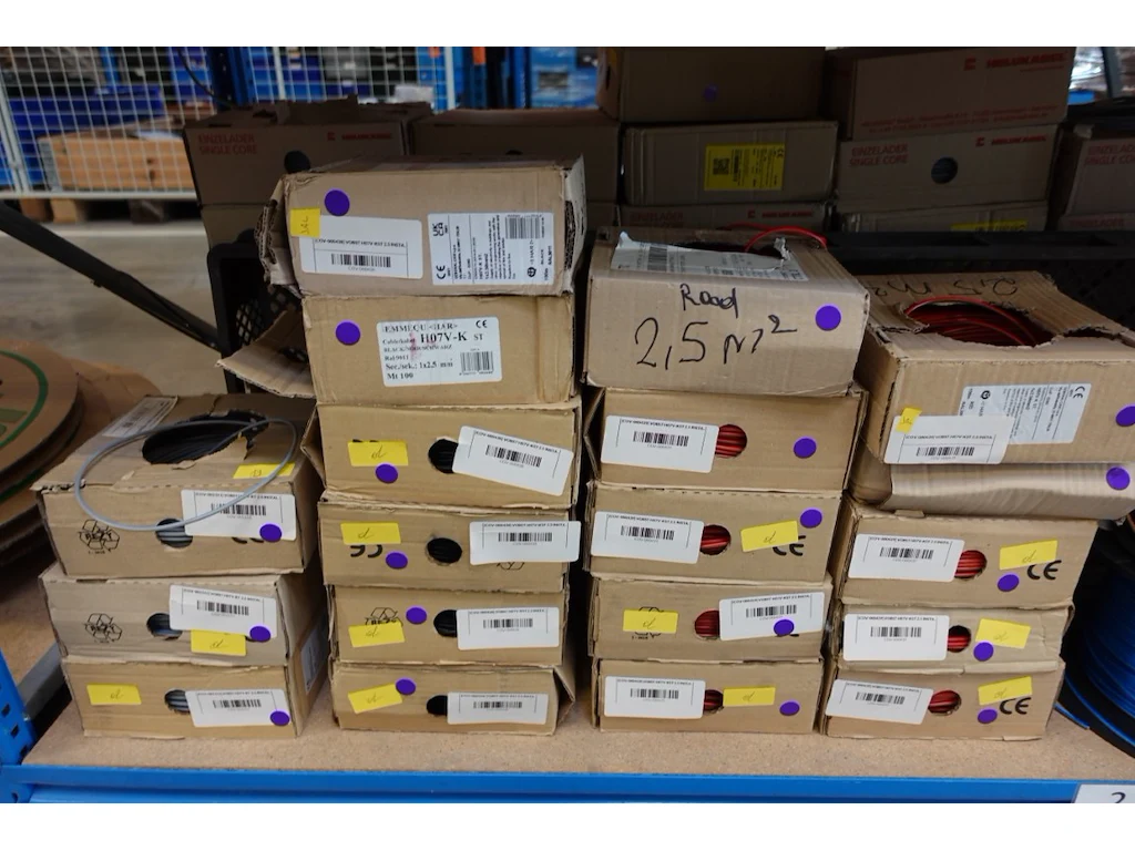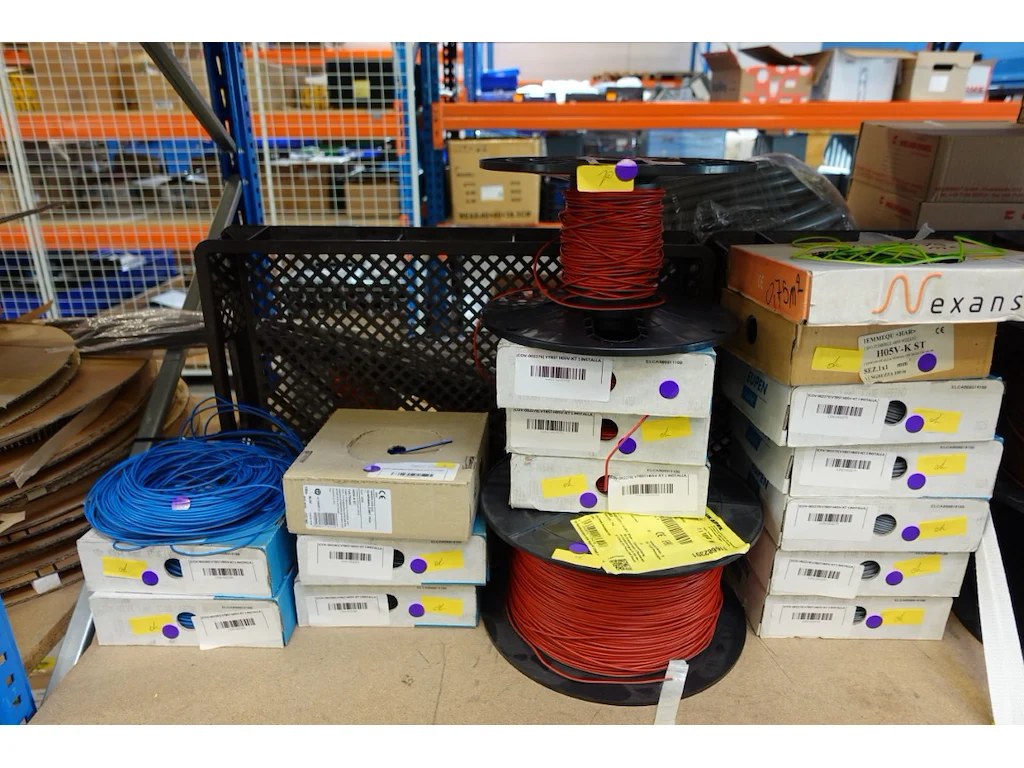 Volledige inhoud rek elektrische kabels