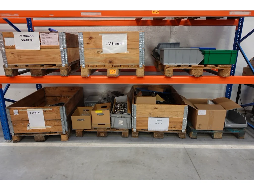 Oa: elektrisch componenten, grijpbakken, metalen onderdelen,...<br /> locatie: magazijn