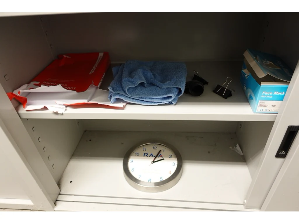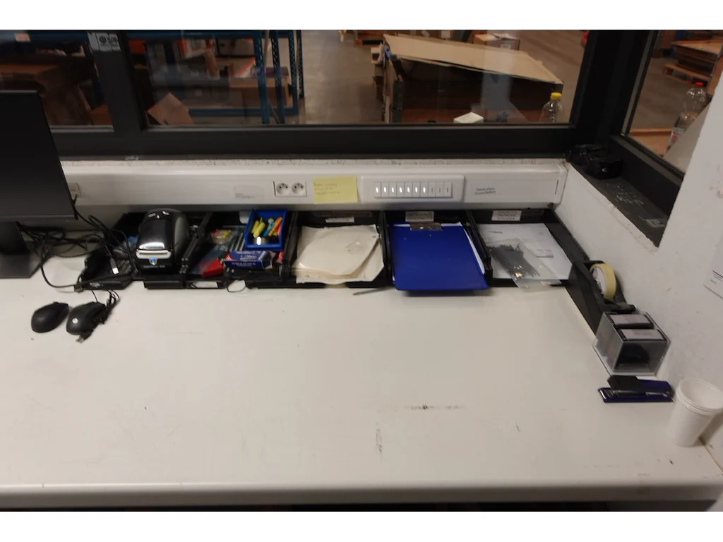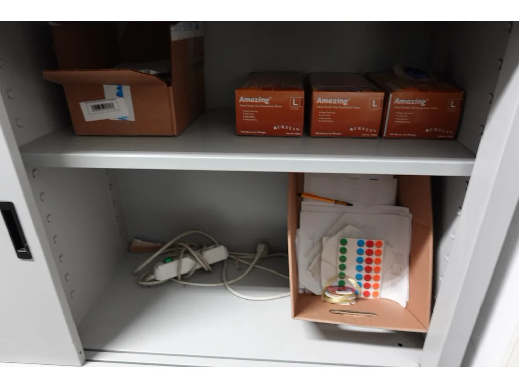 Oa: printer, bureaumateriaal, computerscherm, 2x metalen dossierkast,...<br /> locatie: magazijn