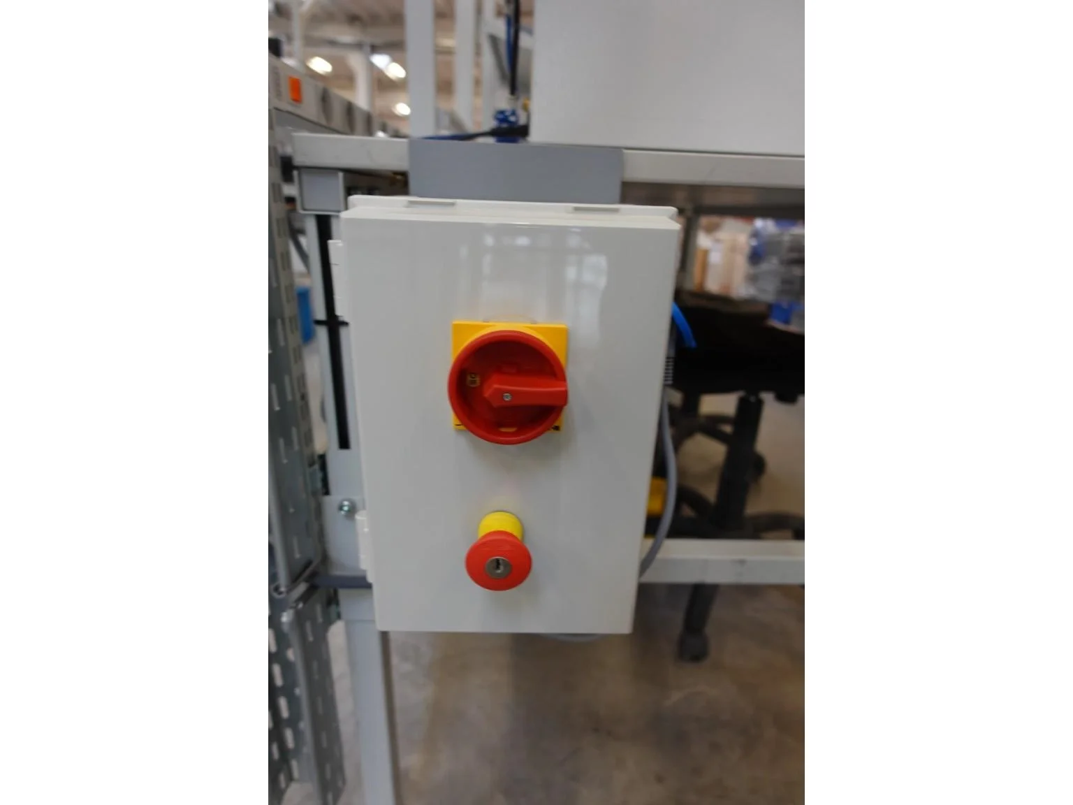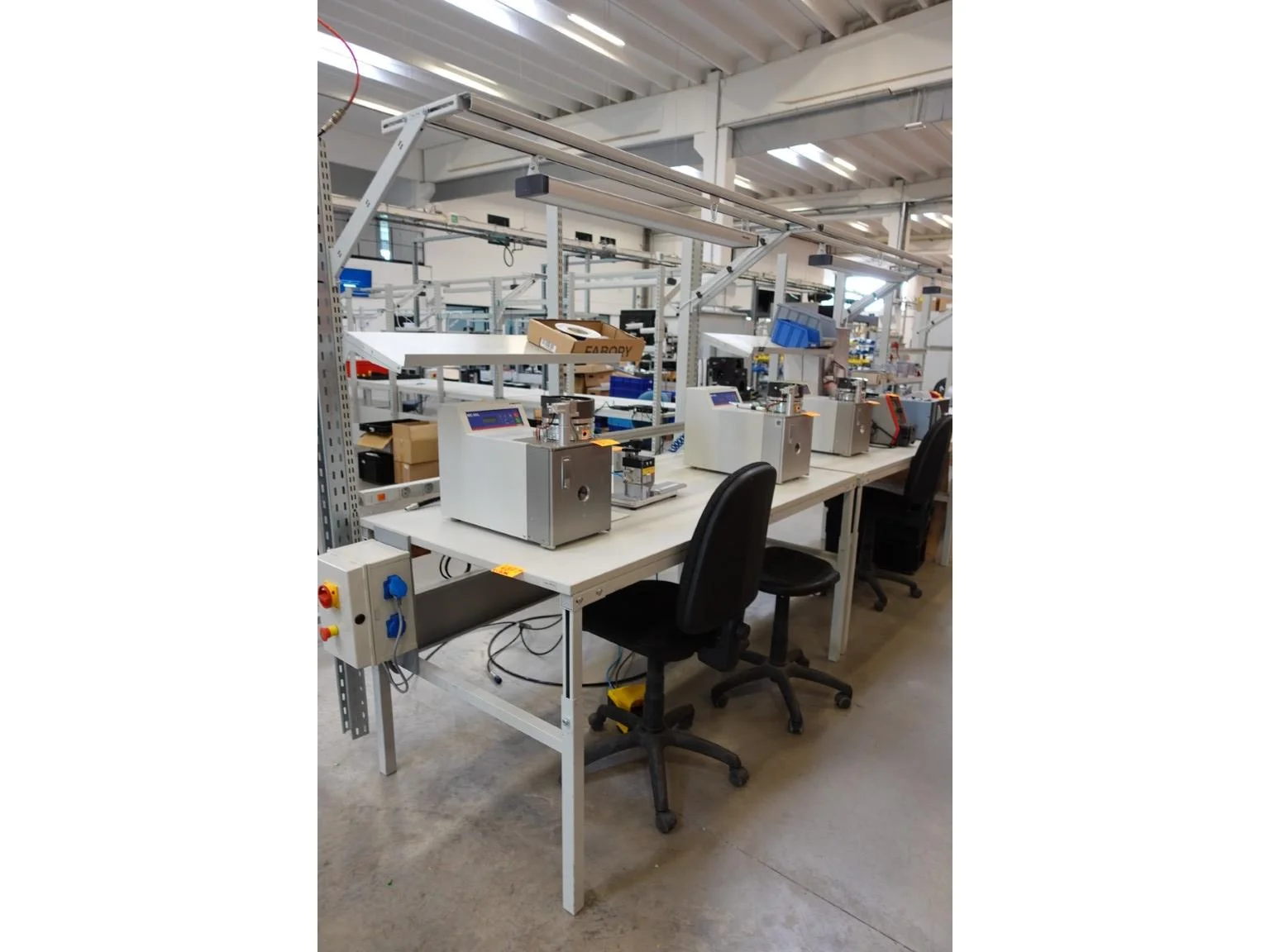 1800x900 in hoogte verstelbaar, inclusief de houder met verlichting en stopcontacten, bureaustoelen,...)<br /> locatie: magazijn