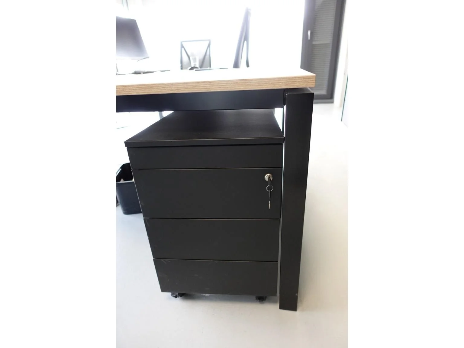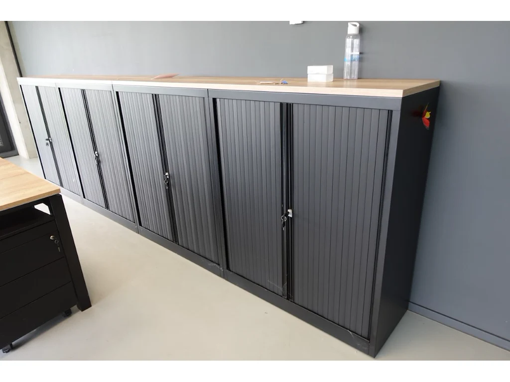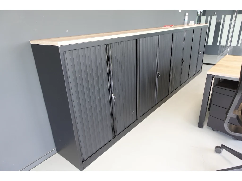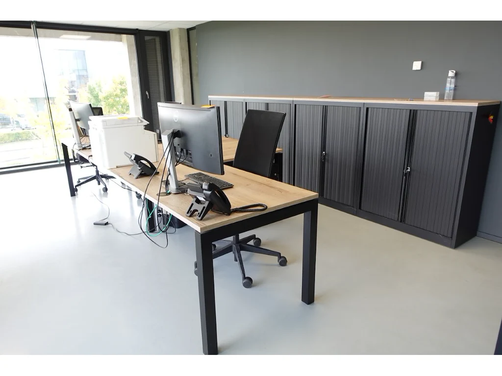 Oa: 4x lage dossierkast, 3x bureaustoel, bureautafel (l3500), ophalen 2de afhaaldag<br /> locatie: bureau verdiep 1