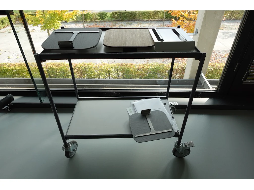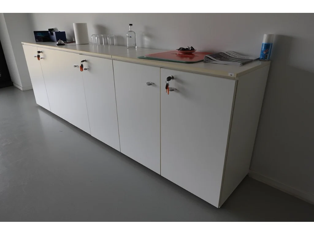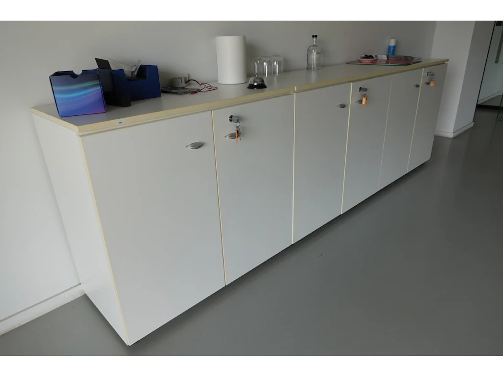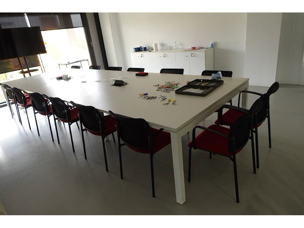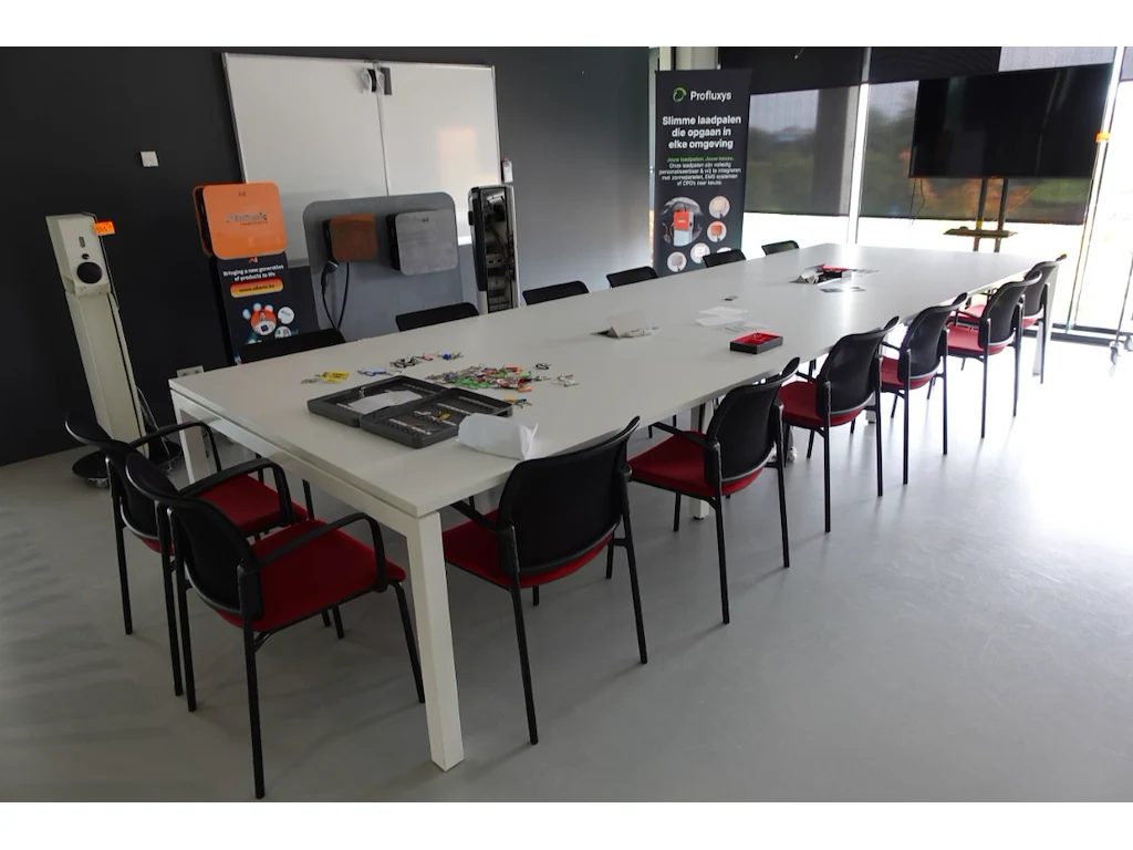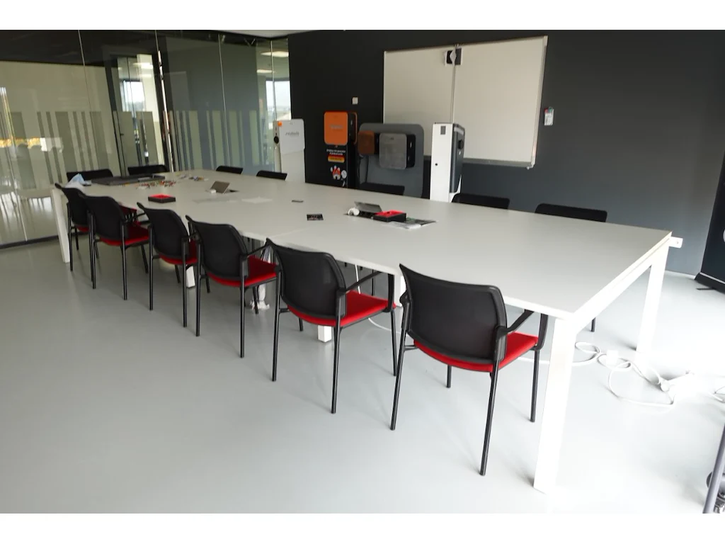 Oa: 3x Tafel (l1600x1600), 14x Stoel ,3x lage kast, magneetbord<br /> locatie: bureau verdiep 1