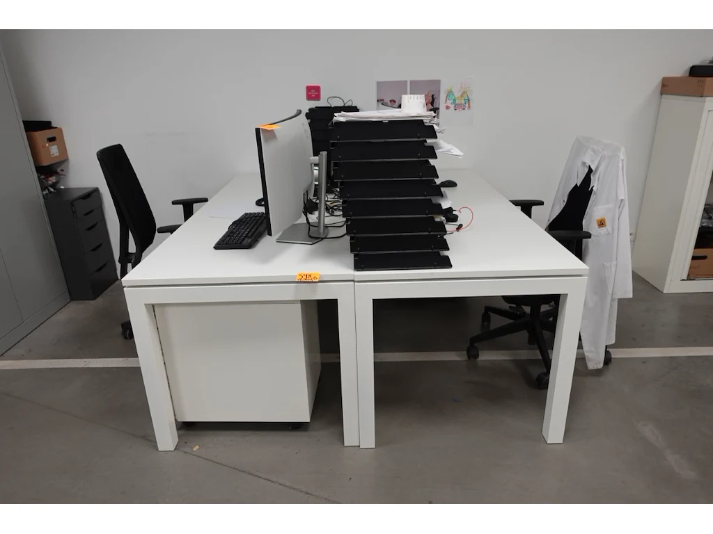 Oa: 2x grote dossierkast, 2x tafel (l:1800), 2x bureaustoel, 2x ladenkast<br /> locatie: bureau gelijkvloers