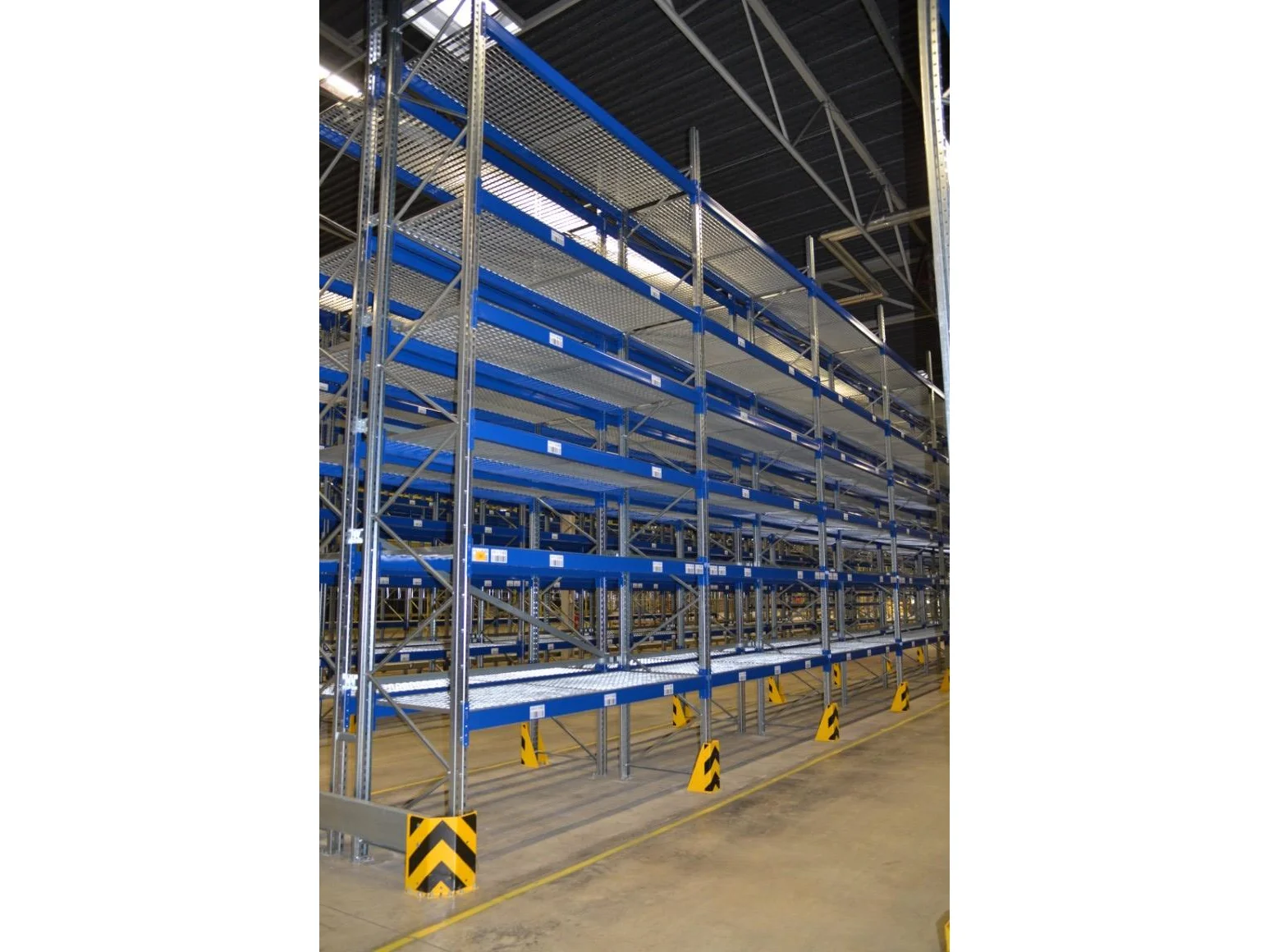 Hoogte=6000mm 9 staanders. 96 liggers lengte=2700mm. Voorzien van roosters en aanrijbeveiliging.