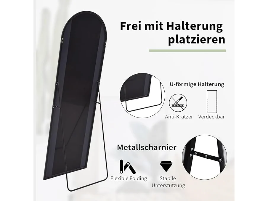 Ongebruikt, volledig, ok, Koonmi Boog full-body spiegel, 53 x 163 cm, gewelfde staande spiegel, groot in volledige lengte, aan de muur gemonteerd, leunend, vloerspiegel, B0B5TMM2B4