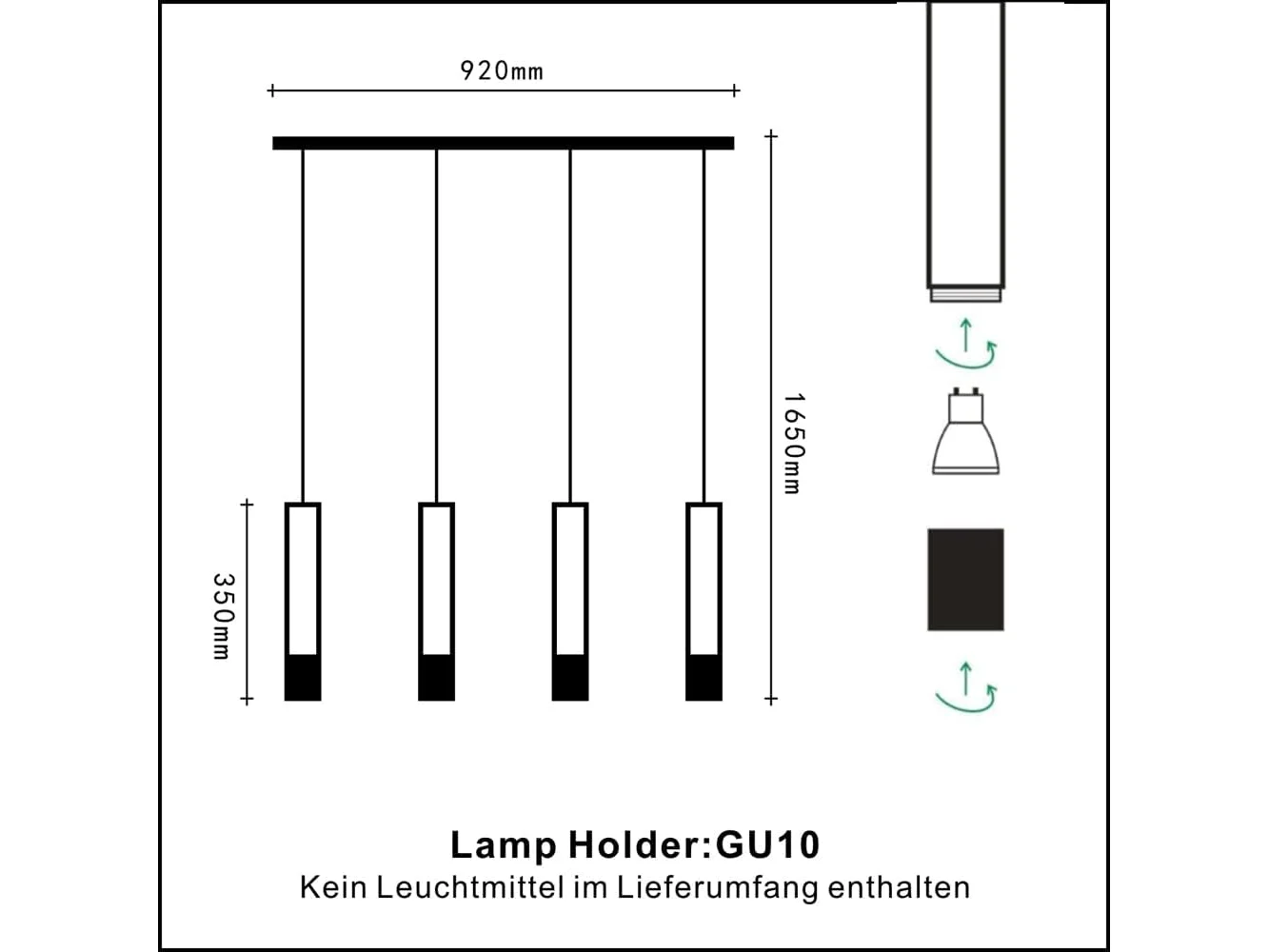 Ongebruikt, getest en werkend, ok, beschadigde verpakking, Ouglres Hanglamp, 4 lampen, zwart, moderne cilinder, hanglamp, eettafel, industriële eettafellamp, vintage houten hanglamp voor keukeneiland, woonkamer, hotel, eetkamer, restaurant, kantoor, Gu10, B0CYGTNTQX