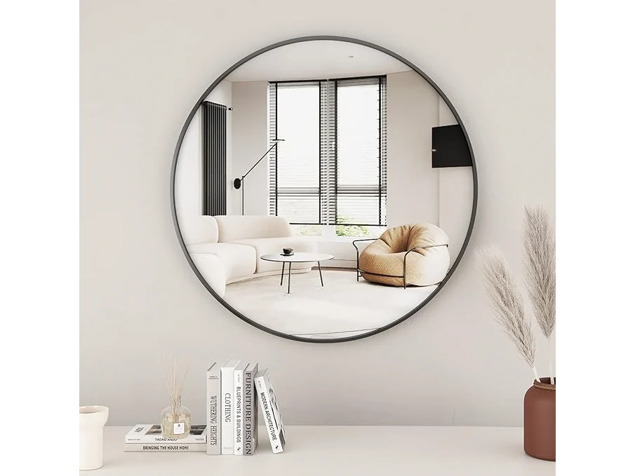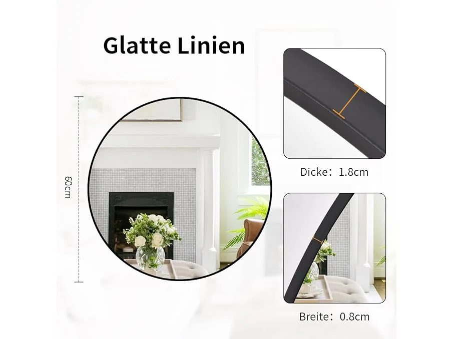 Ongebruikt, ok, Koonmi 60 cm ronde spiegel zwart ronde spiegel wandspiegel met frame van aluminiumlegering voor badkamer, wastafel, woonkamer, slaapkamer, entree, wanddecoratie, B0BV5YYZFQ