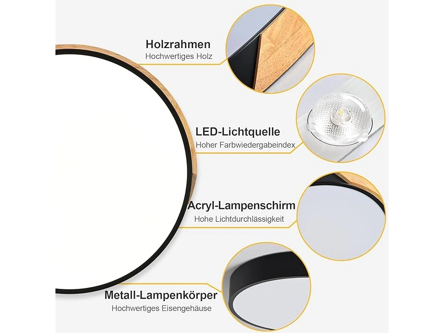 Ongebruikt, getest en werkend, ok, licht beschadigde verpakking, Qamra led-plafondlamp (40 cm), 4000 K, eenvoudige ronde plafondlamp, hout, zwart, woonkamerlamp, slaapkamerlamp, plafondlampen, lamp voor slaapkamer, kleedkamer, kinderkamer, balkon, keuken (40 cm), B0B1Q1TPQQ