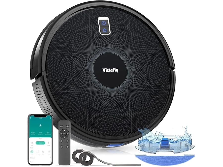 Gebruikssporen, getest en werkend, nieuwe batterij, Ontbreekt: remote, magnetische strip, cleaning brush, 2 extra zijborstels, watertank en mop, Vistefly M303 Robotstofzuiger, 3000 Pa, 120 minuten, batterijduur, compatibel met Alexa, robot voor dierenharen, reiniging van tapijten, harde vloeren, B09HBJ3LTM