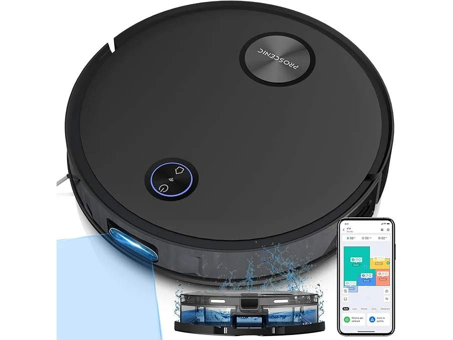 Gebruikssporen, getest en werkend, afstandsbediening ontbreekt, Proscenic V10 Robotstofzuiger, PathPro™ Lidar-navigatie, ultrasoon reinigingssysteem, 3000 Pa Robotstofzuiger, 5 bewerkbare kaarten, app/Alexa-bediening, voor dierenhaar, vloer, tapijt, B0DBTZR8TD