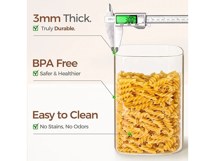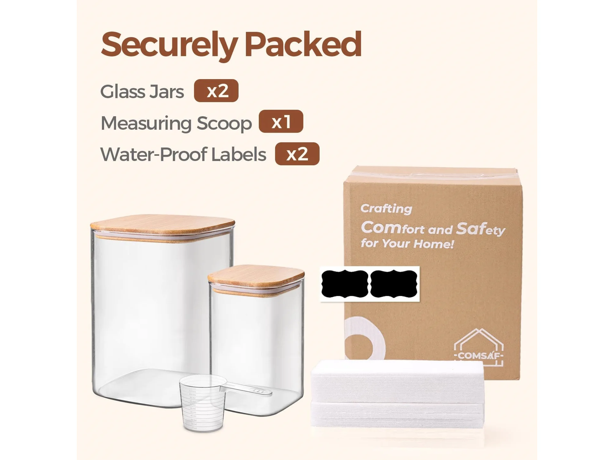 Ongebruikt, volledig, ok, ComSaf glazen voedselcontainers, 3300/1100 ml bloem- en suikercontainers met luchtdichte deksels, grote vierkante potten met bamboe deksels voor rijst, pasta, haver, granen, koekjes, snacks, snoep, B0BFBBV4VG
