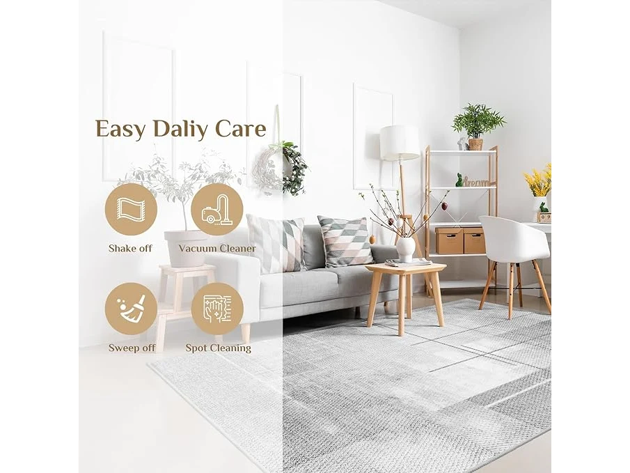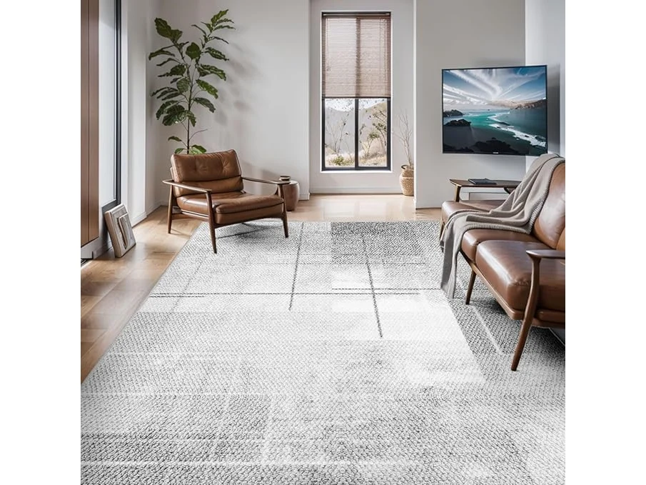 Ongeopend, in seal, Vamcheer Modern tapijt voor woonkamer, modern, geometrisch, abstract, modern design, wasbaar tapijt, decoratie voor salon en thuis, grote tapijten, antislip, zacht, lichtgrijs, wit, 120 x 170 cm, B0D7VX92CS