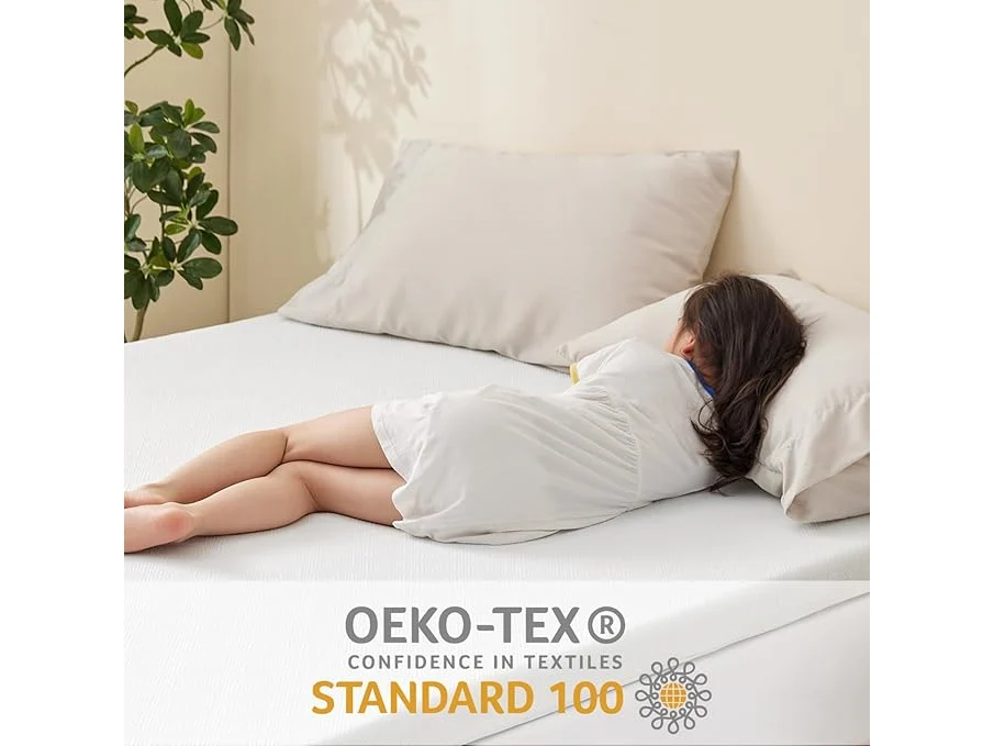 Ongeopend in vacuum, RUIKASI Matrastopper 90 x 200 cm, Öko-Tex-gecertificeerd, 2-in-1 matrastopper, 2 cm lichaamsvriendelijk H2 visco-traagschuim + 5 cm ondersteunend H3 koudschuim, B0CRKQRDWD
