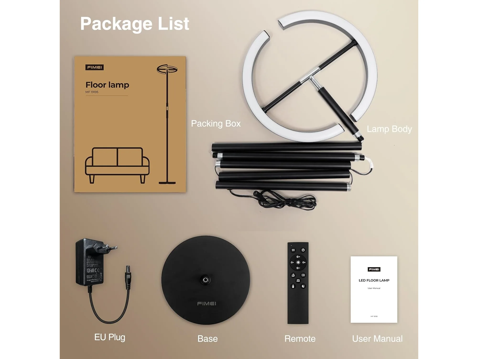 Gebruikssporen, getest en werkend, volledig, ok, originele verpakking ontbreekt, FIMEI Staande lamp, staande lamp met afstandsbediening en touch-bediening, 3000 K-6000 K, kleurtemperatuur en continu dimmen, led-vloerlamp op standaard voor woonkamer, slaapkamer, kantoor, zwart, B0BY7TQ5TM