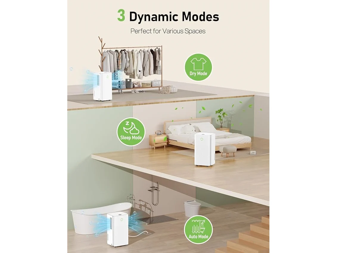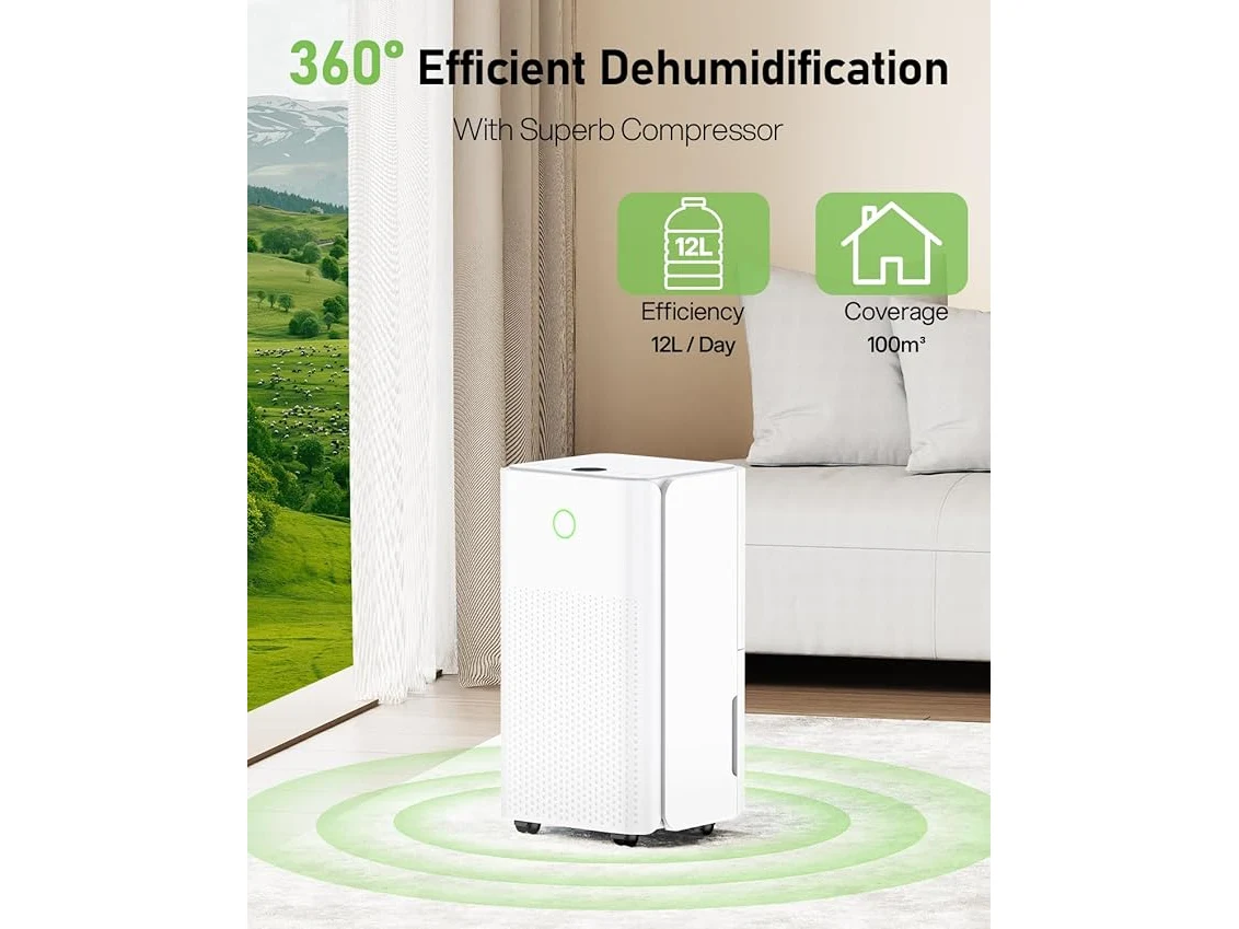 Ongebruikt, getest en werkend, ok, Jervamni luchtontvochtiger, huis 12 l/24u, draagbare luchtontvochtiger voor controle van vocht en schimmel, met timer, automatische ontdooiing, drogerfunctie, automatische uitschakeling, B0DMT6FXYB