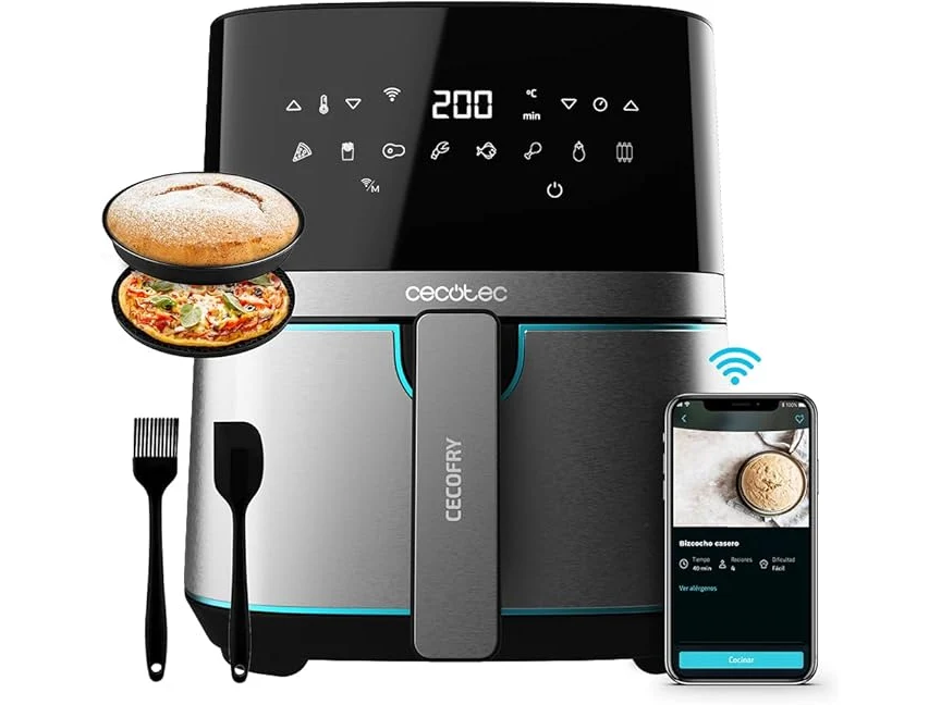 Minieme gebruikssporen, getest en werkend, ok, originele verpakking ontbreekt, Cecotec Cecofry Full Inox 5500 Pro Heteluchtfriteuse, 5,5 liter, 1700 W, compact en digitaal, dieetfriteuse, roestvrij stalen uitvoering, olievrij, PerfectCook-technologie, thermostaat, 8 modi, B0BQ12M4CT