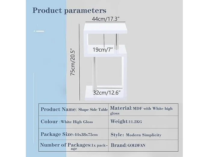 Ongeopend, GOLDFAN Moderne bijzettafel, salontafel, woonkamer, wit, multifunctioneel, met 3 planken, 44 x 38 x 75 cm , B08C29Q98Q