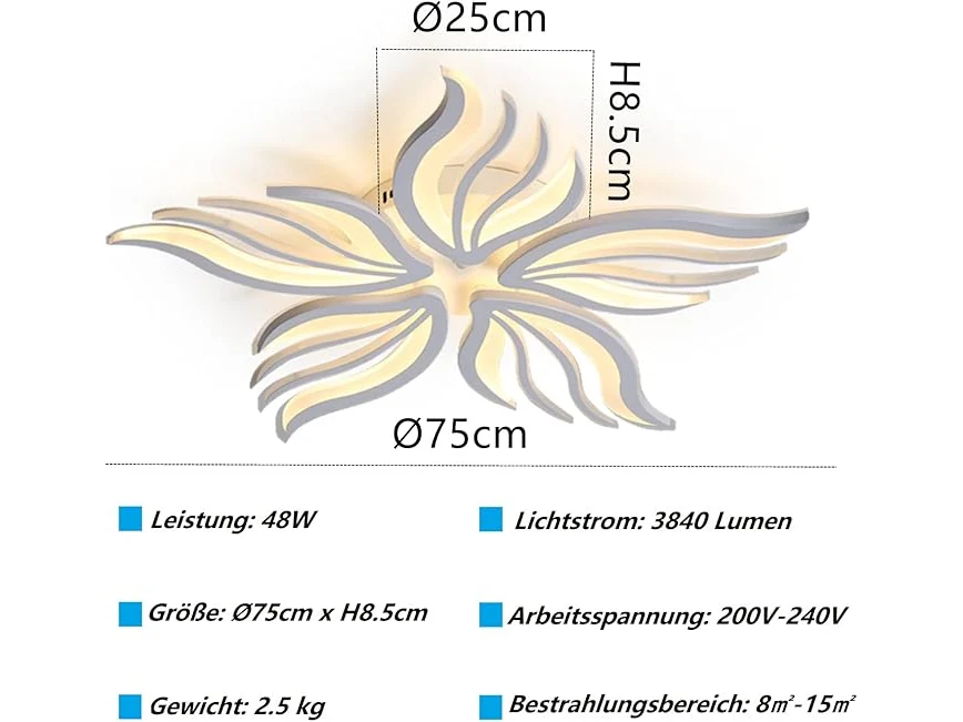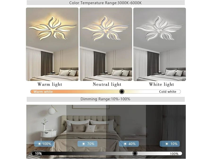 Ongebruikt, getest en werkend, ok, Moderne led-plafondlamp, dimbaar, 48 W, woonkamerlamp, plafondlamp, slaapkamer, met afstandsbediening, lichtkleur, kleurverandering, wit, plafondverlichting, dimming, binnenverlichting,B09JYNSJ83
