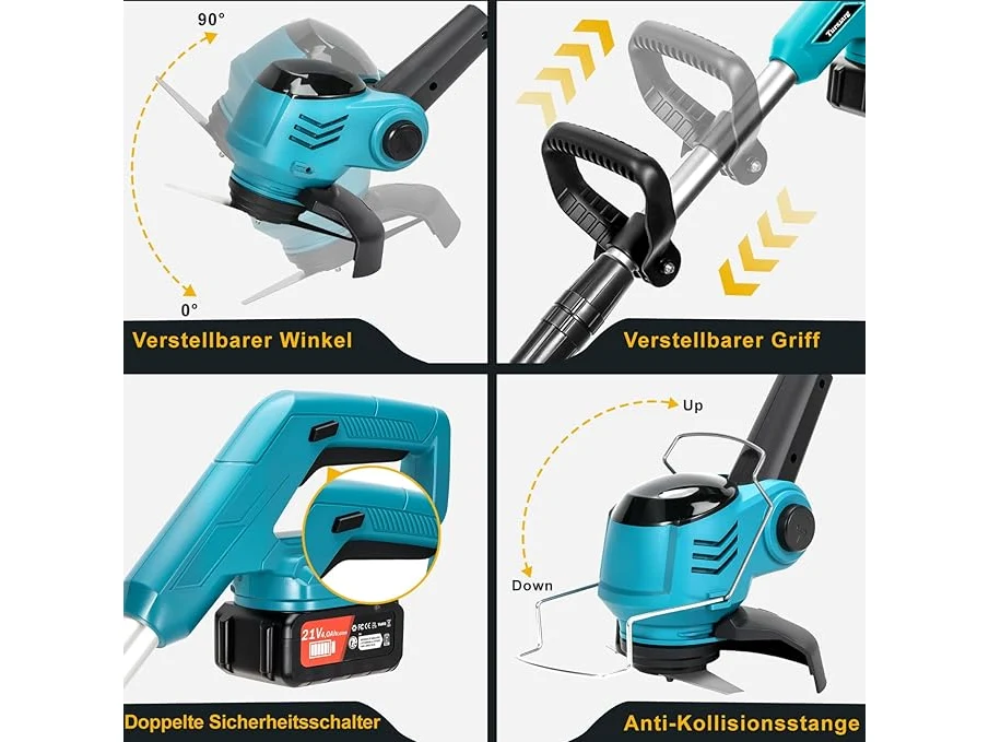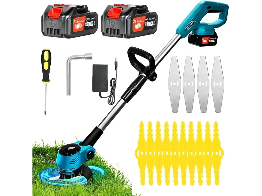 Minieme gebruikssporen, getest en werkend, ok, Xbzzgmg Accu-grastrimmer met accu, 2 x 4000 mAh accu, bosmaaier, accu, 3-in-1 grastrimmer, Bring telescoopstang en extra handgreep, bosmaaier, grastrimmer voor het snijden van gazons,B0DPF9DGP3