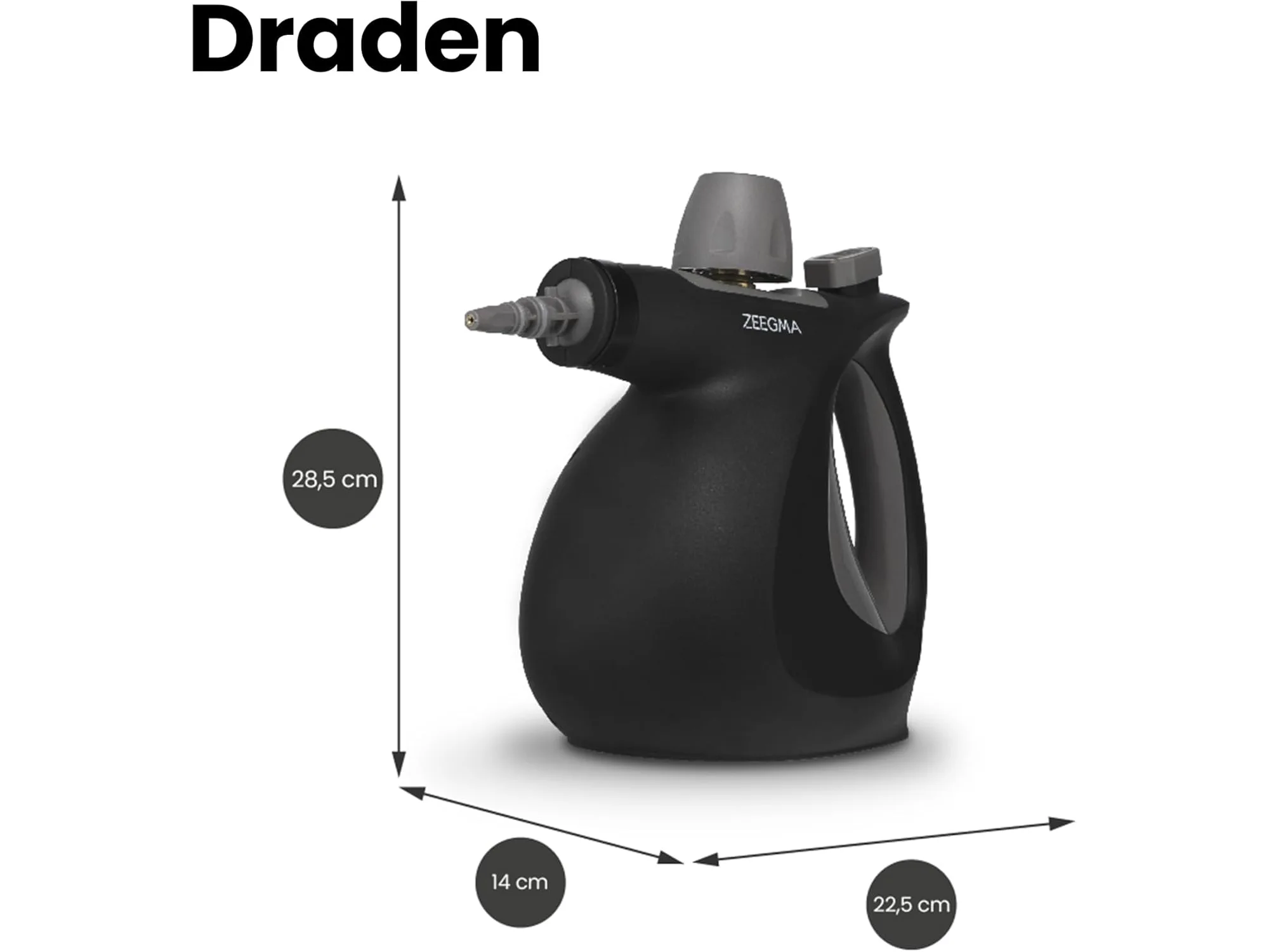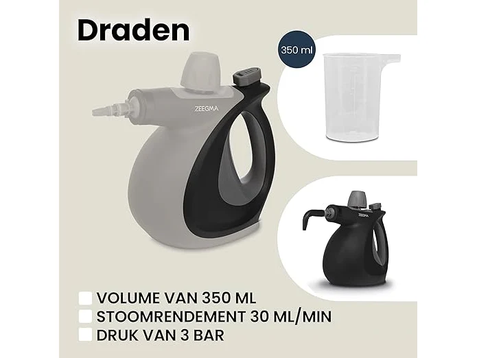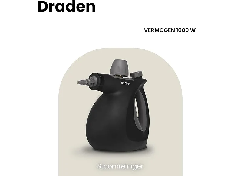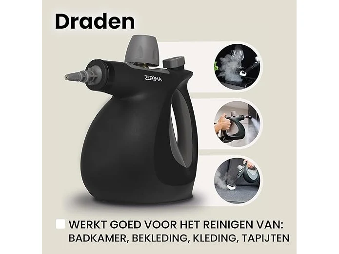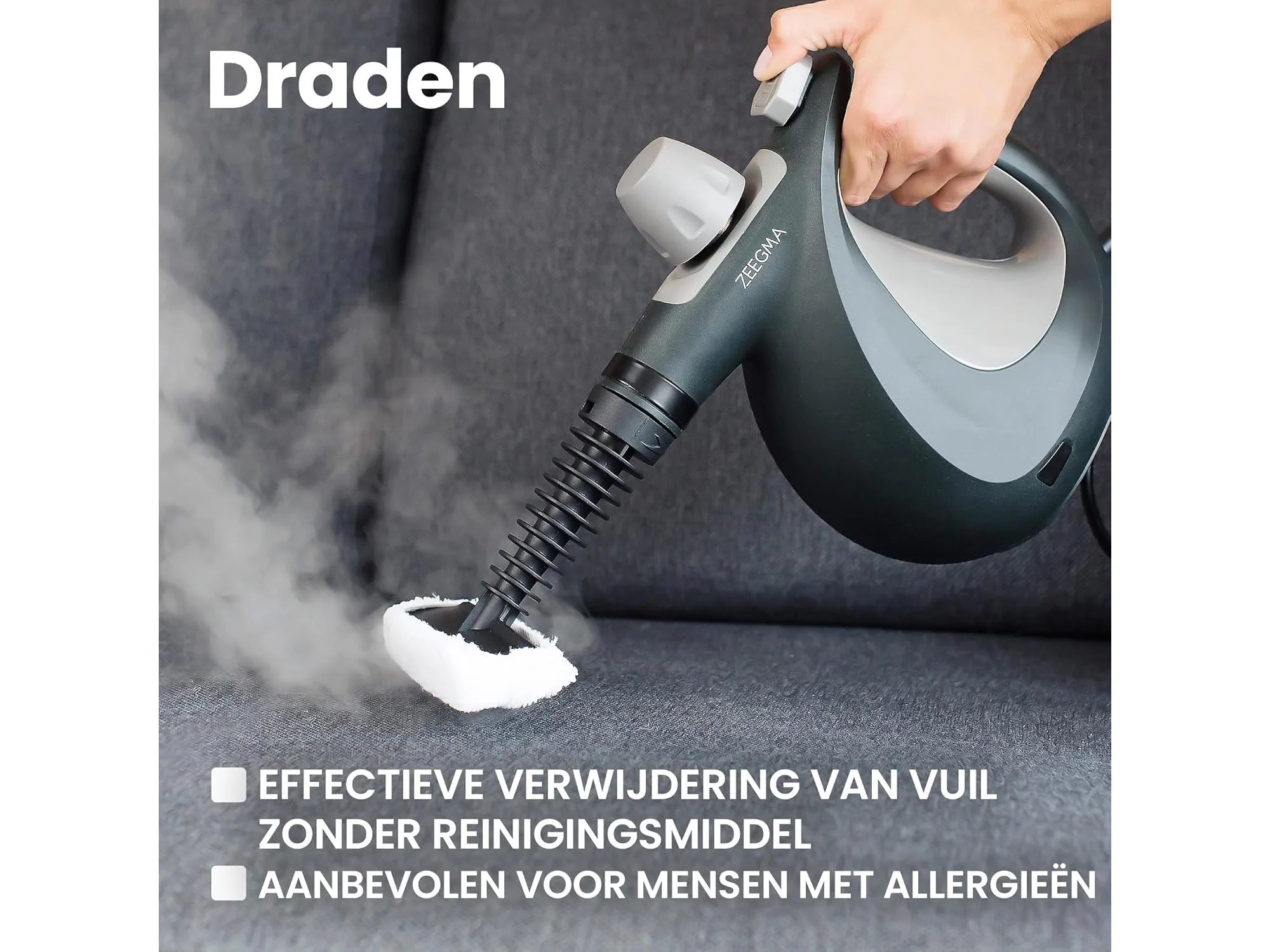 Ongebruikt, getest en werkend, volledig, ok, ZEEGMA Draden Stoomreiniger - 1000W, 9 Opzetstukken, 3 Bar, IPX4, 110°C, Roterend Mondstuk, Snelle Opwarming, Kindveilig, B081K44XX9