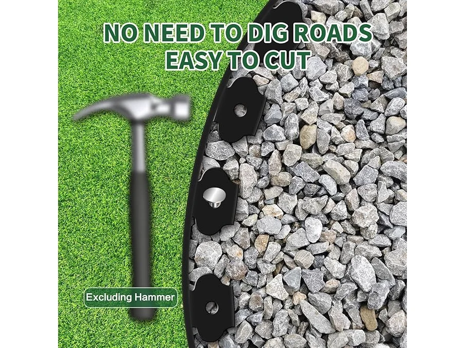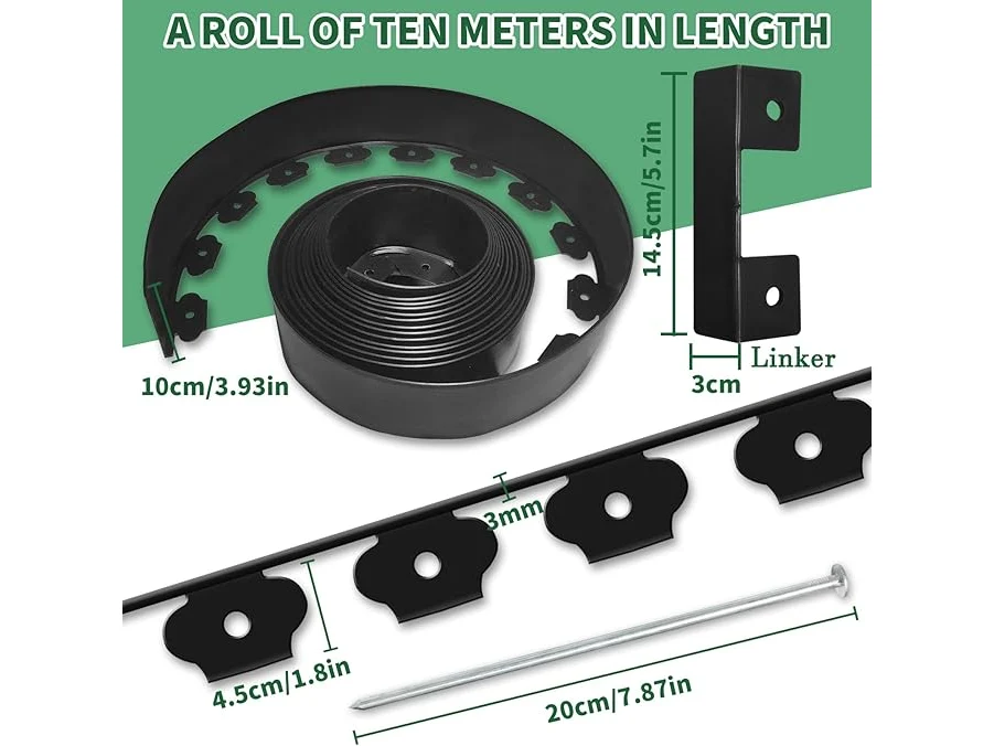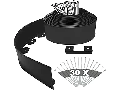 Minieme gebruikssporen, volledig, ok, YEEBECA Kunststof gazonrand, flexibele gazonrand, voor gazononderhoud, met linker, 30 stalen ankers, 10 cm hoog - 10 m lang, zwart, B0CSJQ1V4B