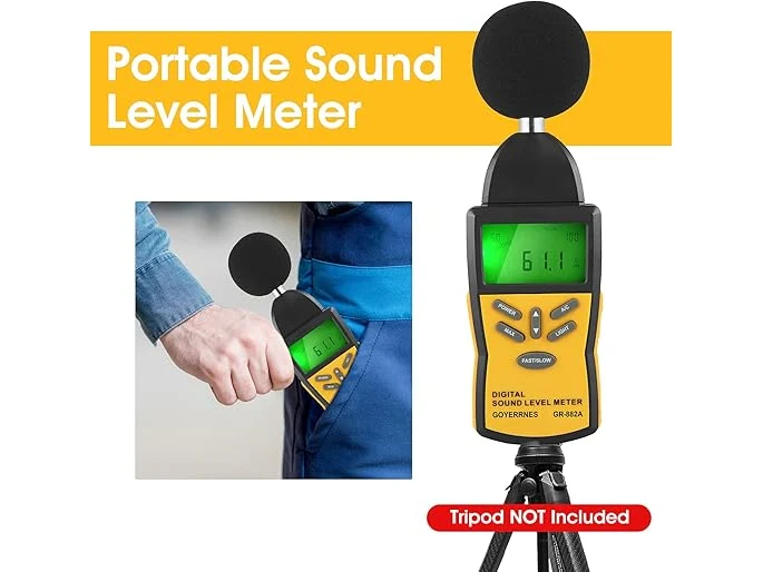 Ongeopend, ok, Decibel Meter, Digitale geluidsniveaumeter 30-130dBA, GR-882A SPL-meter, Handheld digitale volumemeetapparaat met achtergrondverlichting LCD-scherm, audio-ruismeter voor klaslokaal, thuis, kantoor, fabriek, B0BGG6BP1P
