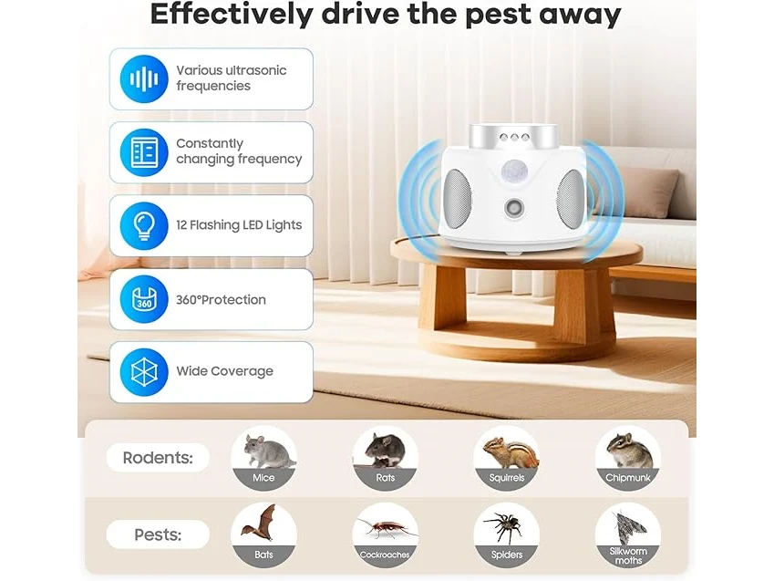 Ongebruikt, getest en werkend, usb kabel ontbreekt, ok, Ultrasone muizenverjager, rattenverjager, ultrasoon geluid tegen muizen, verjager, 4 modi & stroboscooplicht, ultrasone ongediertebestrijder tegen ratten in de tuin,B0D7DNMCH1