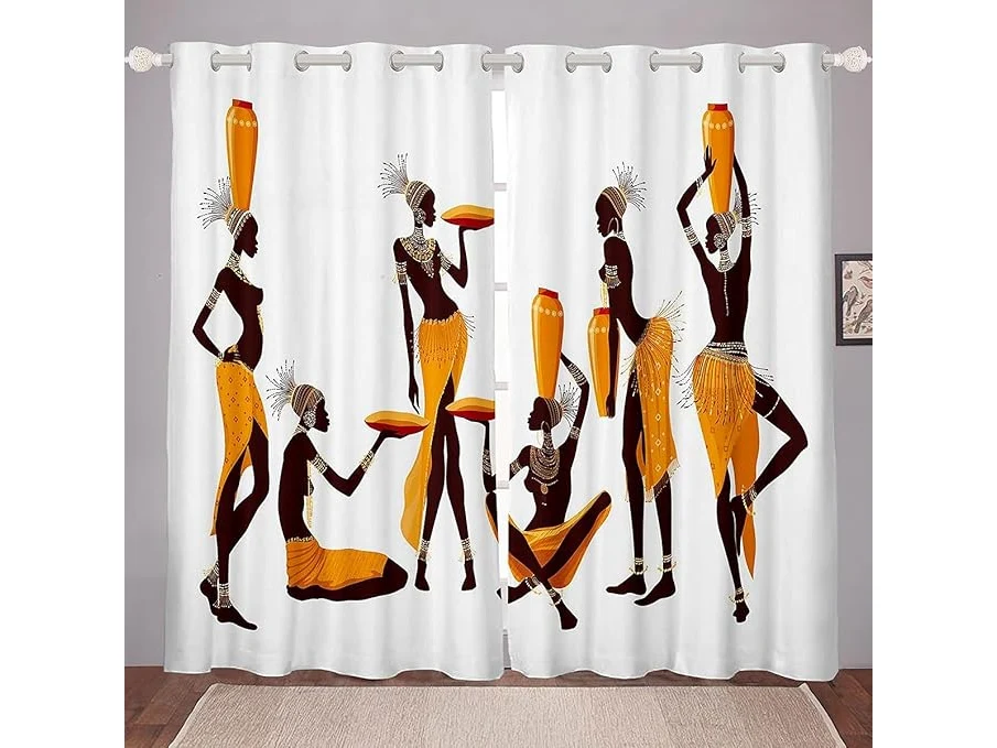 Ongeopend, ok, Afrikaanse Vrouwen Raam Dreapes Afrikaans Gordijn Etnische Afro Exotische Gordijnen voor Kinderen Kinderen Jongens Meisjes Microfiber Raambehandelingen Witte Kamer Decor B66*L 90,B094JHHBB3