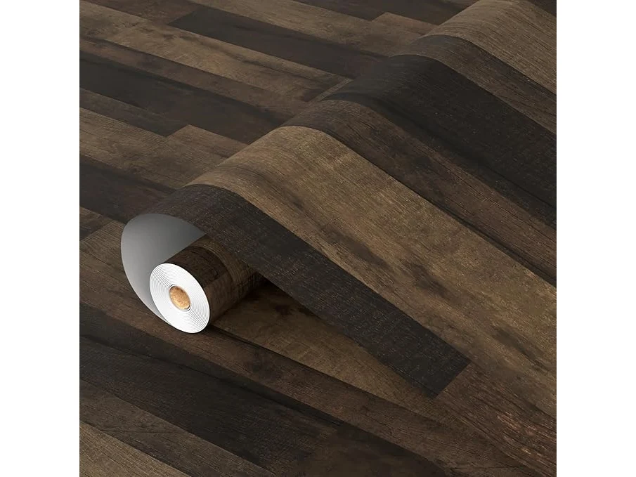 Ongebruikt, ok, 2 x Homease PVC-vloeren Zelfklevende vinylvloer met houtlook, vintage look, waterdichte, snijdbare vinylvloer, vloersticker voor slaapkamer, keuken, woonkamer, 60 x 500 cm, donkere retrostijl, B0D5M2R55X
